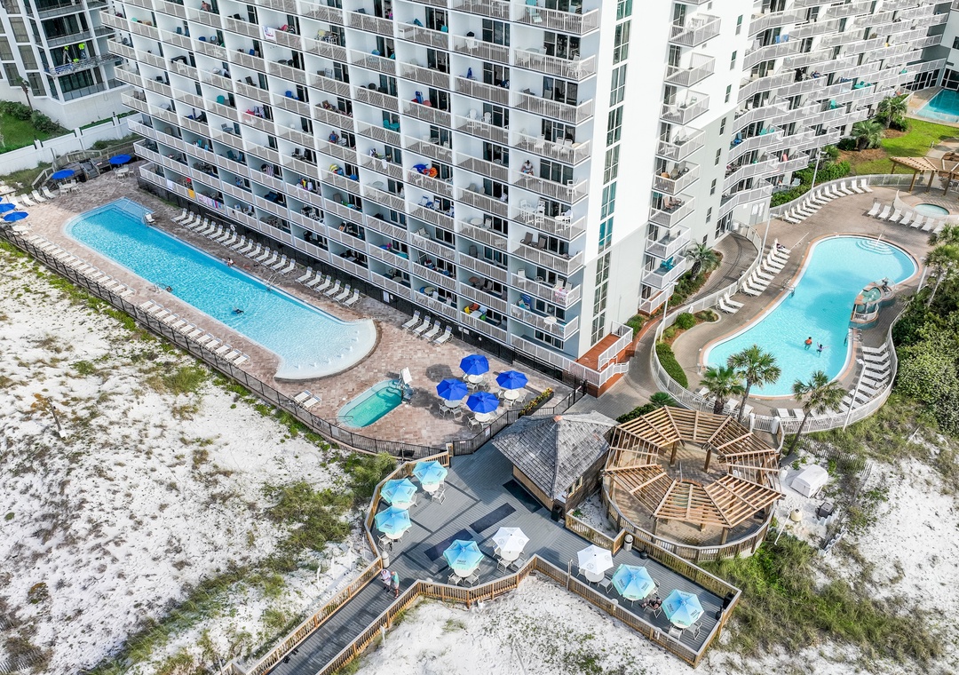 Pelican Beach Resort offers all the amenities you’d expect in a luxurious resort condominium! This Beach Front Resort offers spacious meeting facilities, THREE Pools including Gulf Front pool, Lake Front pool at The Terrace, an indoor/outdoor pool (seasonally heated), kiddie pool, laundry facilities on each floor, TWO fitness centers, outdoor gas grills, tennis courts, and even a video game room!