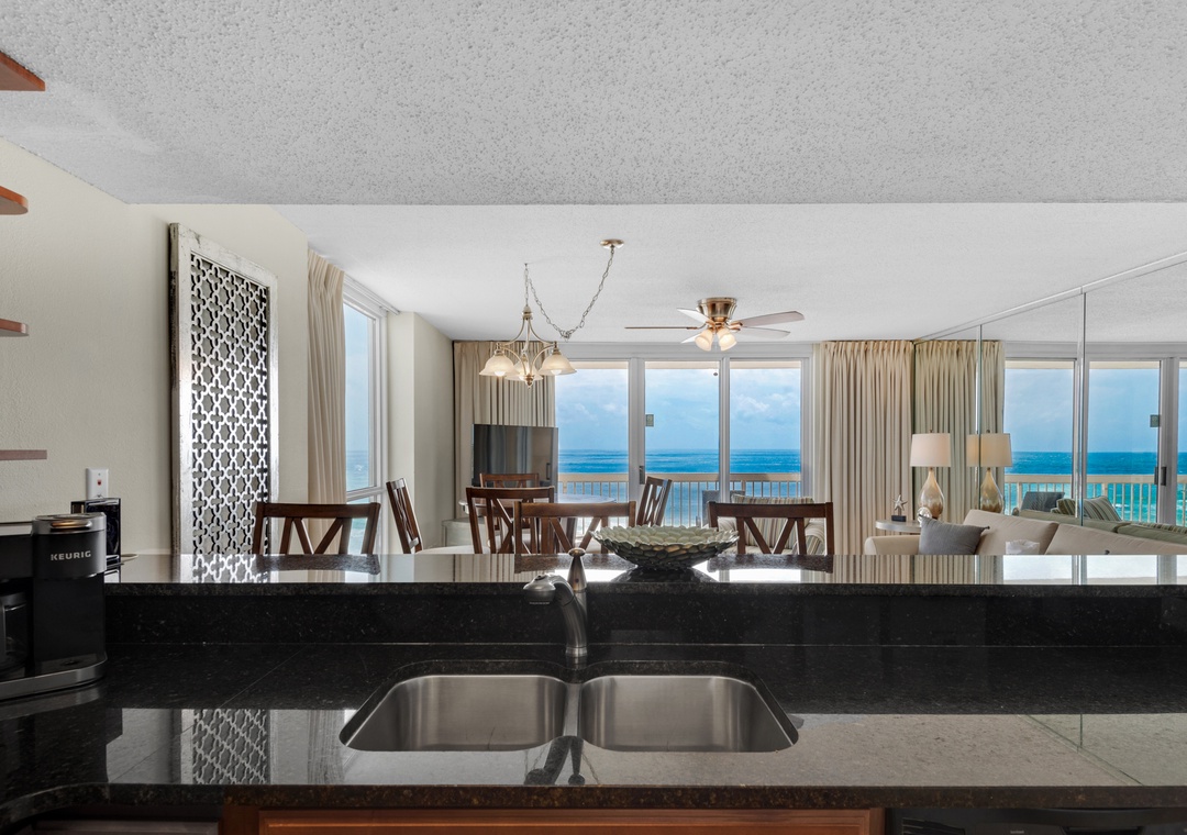 We have stayed at The Pelican a dozen times but always stay in different condos. This unit was great. It can comfortably sleep 7 with a king size master, 2 sets of bunk beds and a couch. It had everything we needed for our stay. The views are magnificent and since its a corner unit you can see it all. The only issue with this place was the cleaniness of the floors upon arrival. We all took our shoes off at the door upon arrival and the floors were very sandy. I would suggest using a leaf blower on the floors. Blow all the sand to one place then sweep it up with a broom then mop. Nothing worse then constant sandy feet inside. Also, the owner needs to get some seating on the master balcony. Seems silly to have a balcony and nowhere to sit and relax. Bring laundry pods. We washed our sandy beach stuff each day and washed all our dirty laundry the night before departing. Nothing better than getting home from vacation with all clean clothes!! We very much enjoyed our stay here and would definitely rent this particularly unit again. Thanks for sharing your home with us!!- Reviewed On: 7/18/2023