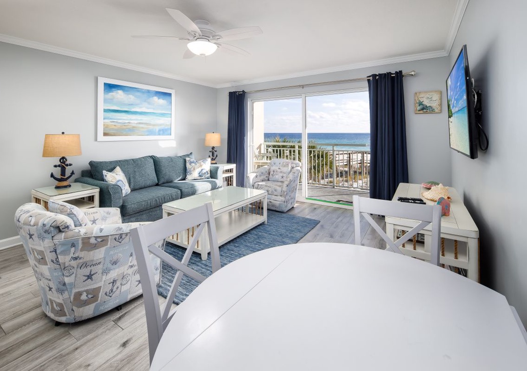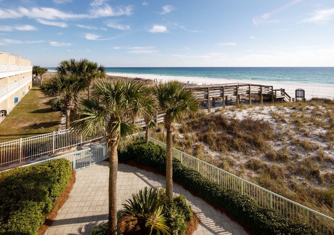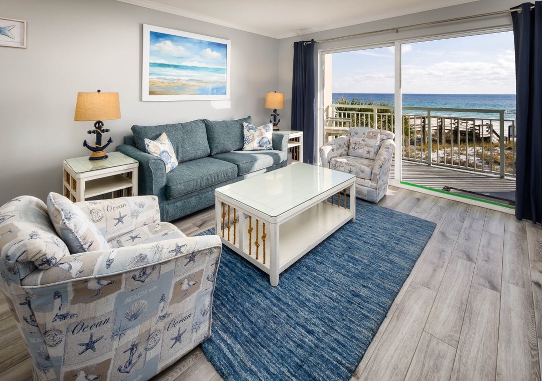 Welcome to Pelican Isle 202, your perfect beachfront escape on Okaloosa Island! This beautifully appointed 1-bedroom, 2-bath condo boasts stunning Gulf views that can be enjoyed from the spacious private balcony—an ideal spot for morning coffee or sunset relaxation. The open-concept living area provides plenty of room to unwind after a day in the sun, while the convenient stair access places you just steps from the pool and sugar-white beach. The fully equipped kitchen makes preparing meals a breeze, whether you’re cooking breakfast or a casual dinner in.