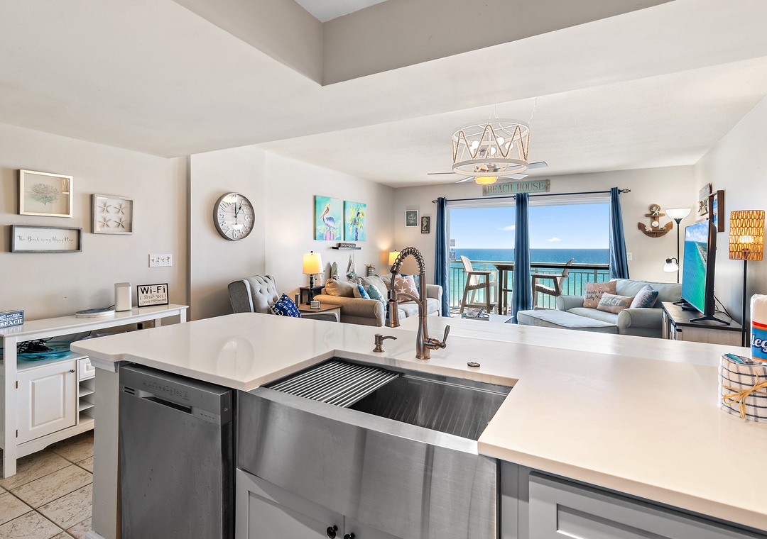 Escape to Pelican Isle 512, a charming 2-bedroom, 2-bath retreat where the sugar-white sands meet the sparkling emerald waters of the Gulf of America. The fully equipped and newly renovated kitchen makes cooking a breeze, so you can savor delicious, home-cooked meals while enjoying stunning views. Step out onto your private double balcony to watch dolphins play in the Gulf's crystal-clear waters. The master suite features a king bed and opens directly to the balcony, offering breathtaking Gulf views. The guest bedroom is furnished with two queen beds, and there are twin-over-twin bunks in the hallway, providing plenty of space for up to eight guests. For your convenience, a washer and dryer are included, ensuring you stay fresh throughout your visit. Come create unforgettable memories at Pelican Isle 512!