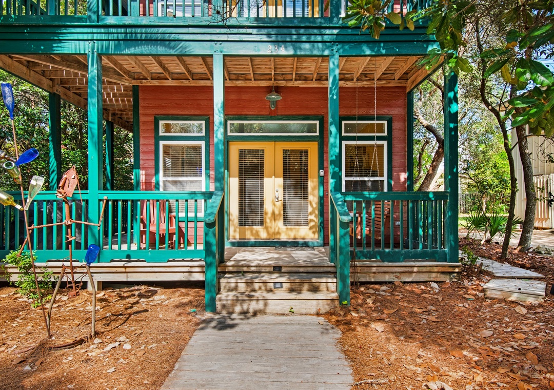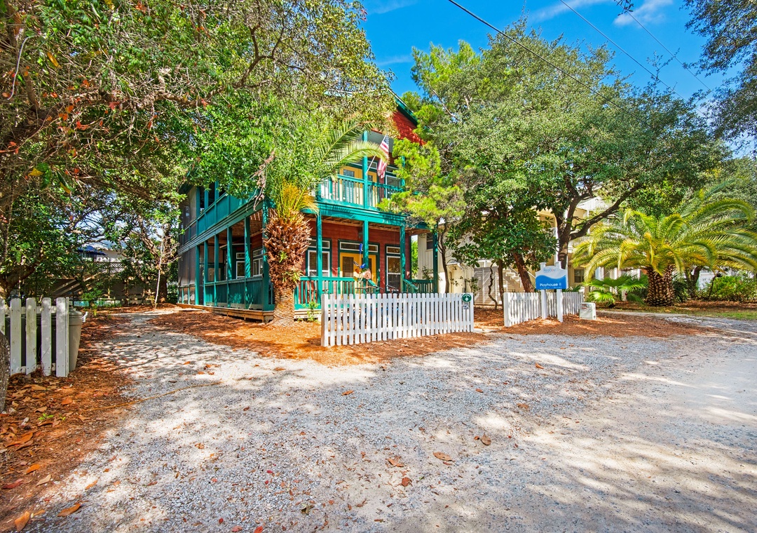 Take a break from the ordinary, and escape to Playhouse II. This spacious and unique 2000 sq ft beach house is in the heart of Seagrove Beach and next to Seaside Town Center! With colorful artwork throughout, and one-of-a-kind items in every room, you'll have as much fun in this home as you will outside of it. Nestled in a tropical, neighborhood setting, you'll enjoy relaxing on the multiple porches and balconies while planning your day over your morning coffee. Step inside the first floor for the eclectic living room, well equipped kitchen, and a guest bedroom with a Full over Full bunkbed. The second floor features the master bedroom with a King bed, and a guest bedroom with 2 Queen beds. Continue up the stairs to the crows nest for views of the Gulf over the tree tops, and a Twin bed, bringing the total number of guests this home sleeps to 11. The outdoor shower is a perfect spot to rinse off after returning from the beach, just a short walk away. Stroll over to Seaside Town Center anytime you want to take in the galleries, fine cuisine, live theater, variety of stores, or coffee shops! This is the entertaining beach vacation you have been looking for, at Playhouse II.