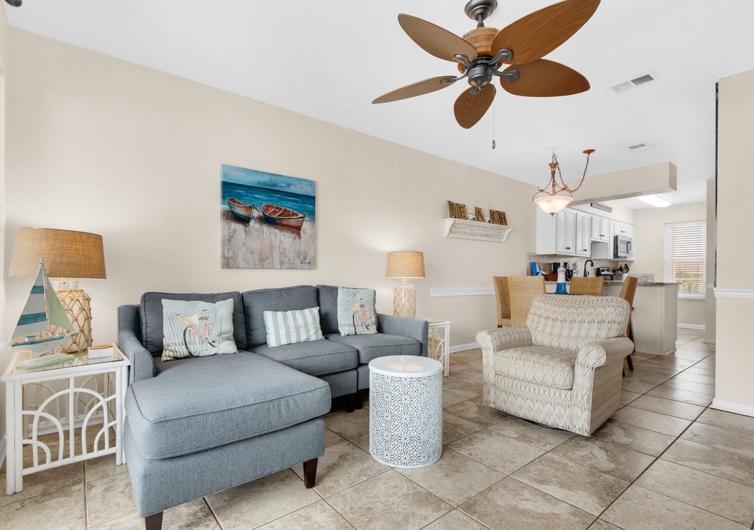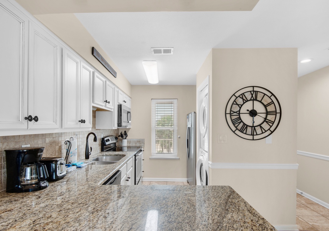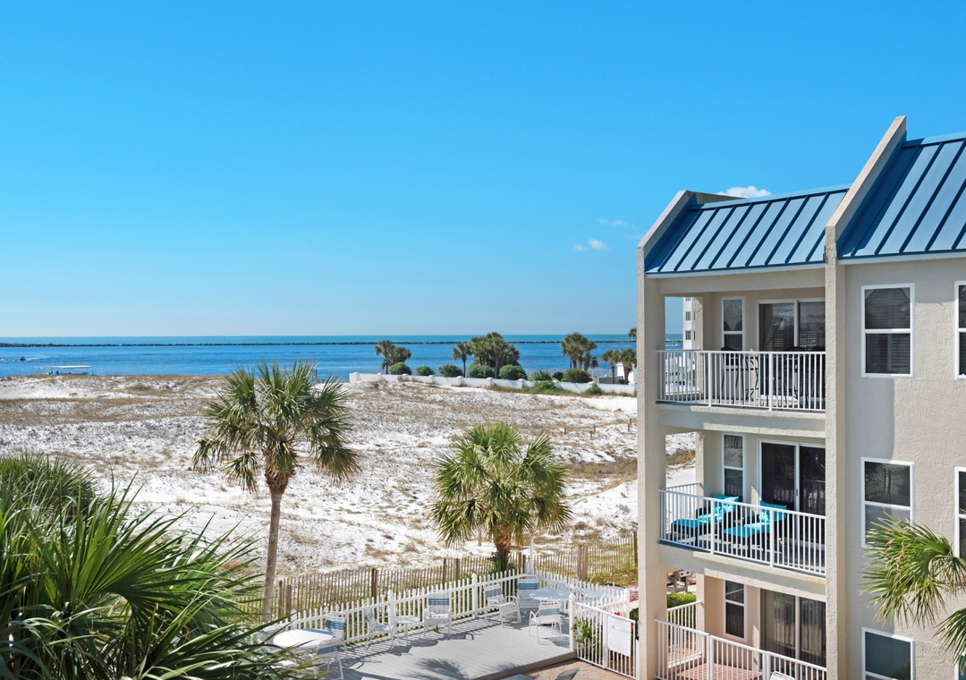 Welcome to Poolside Villas #302- Harry's Beach House. You will fall in love with this beautiful condo located right in the heart of Holiday Isle with Gulf views. This coastal inspired 2BR/2BA condo sleeps up to 4 guests. The master bedroom features a King bed with en suite, and the guest bedroom has two twin beds. The recently updated kitchen offers granite countertops with updated appliances and a washer and dryer for your convenience. Enjoy your morning coffee on the balcony with gorgeous views of the Gulf and East Pass. Come see why Harry's Beach House is the perfect beach getaway.