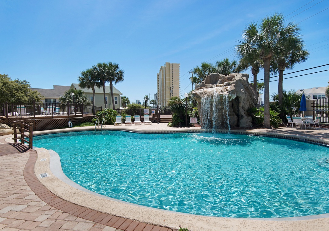 Located only 3 miles from Pier Park, Portside Resort sits on 16 acres and offers easy beach access right across the street. So, you will find sugar-white sands and emerald waters only a short walk away. This complex has 3 community pools on site (one seasonally heated), 3 tennis courts, a shuffleboard area, a hot tub, and a clubhouse. Being on the quiet west end and covered in beautiful palm trees and peaceful landscaping, Portside Resort is idyllic for families seeking a calm, relaxing beach experience.