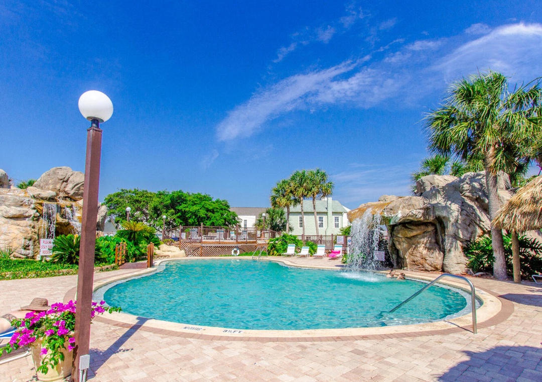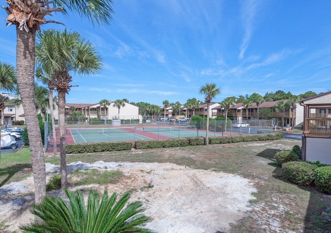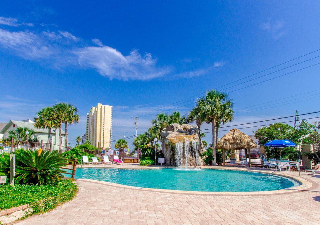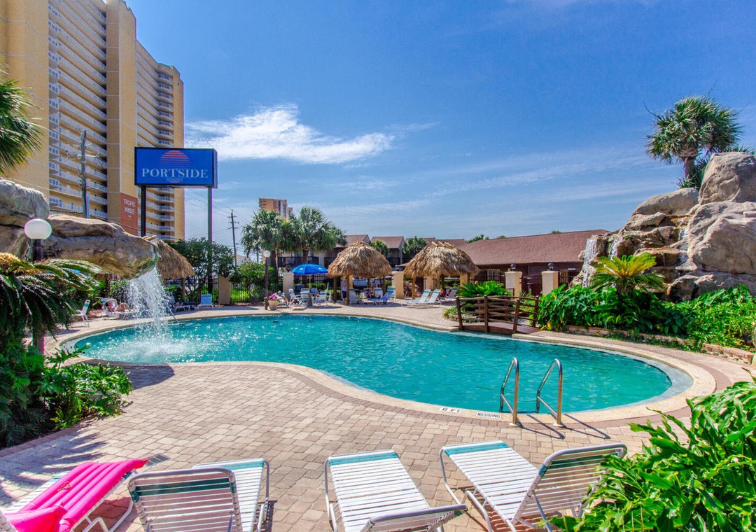 Located only 3 miles from Pier Park, Portside Resort sits on 16 acres and offers easy beach access right across the street. So you will find sugar-white sands and emerald waters only a short walk away. This complex has 3 community pools on site (one seasonally heated), 3 tennis courts, shuffle board area, hot tub, and a club house. Being on the quiet west end and covered in beautiful palm trees and peaceful landscaping, Portside Resort is idyllic for families seeking a calm, relaxing beach experience.