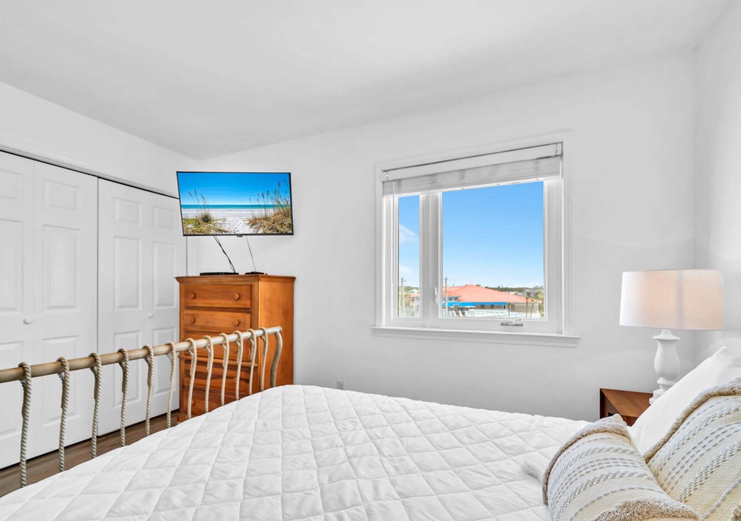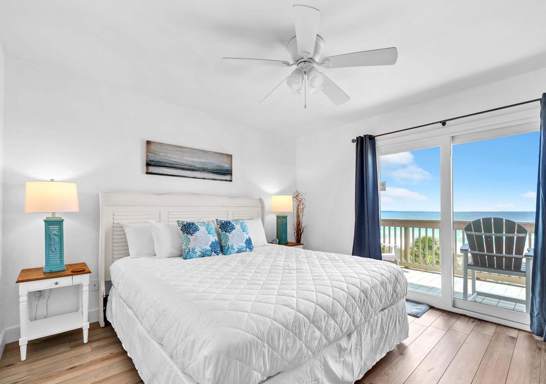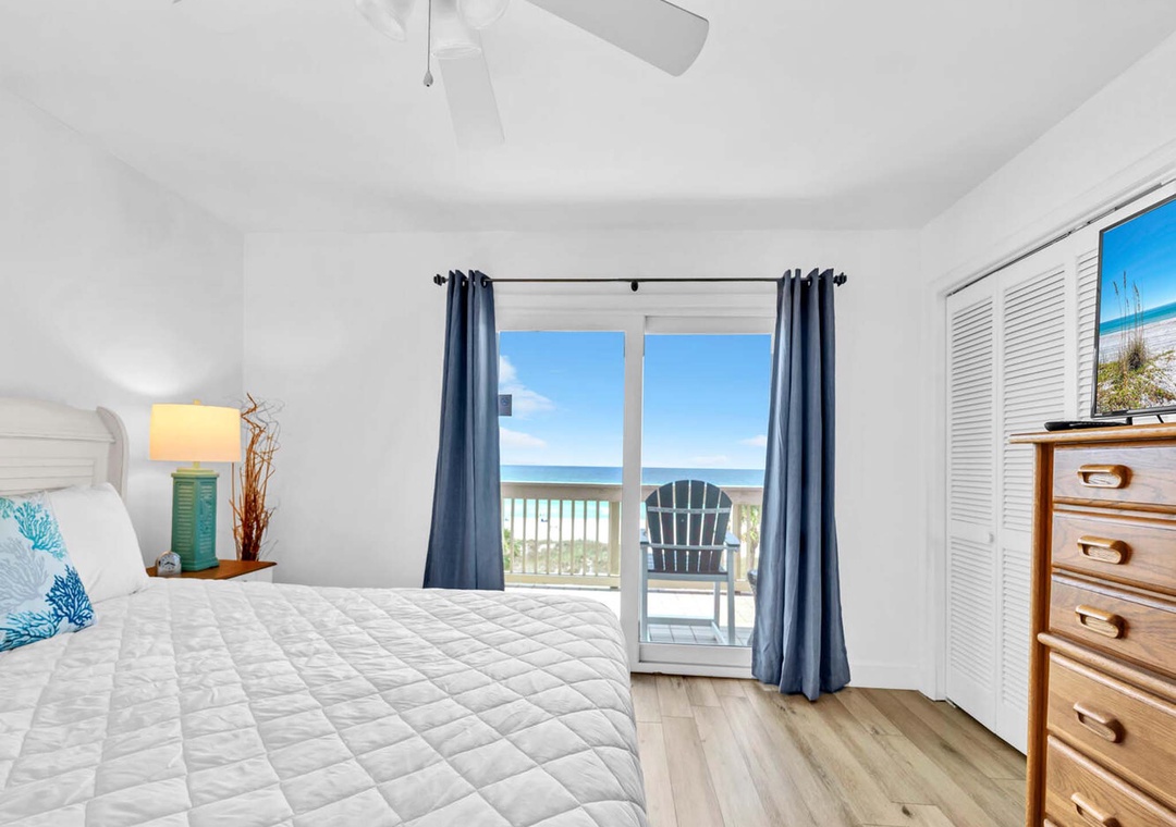 We loved our stay at this Airbnb! It has recently been remodeled and is very beautiful. The king bed was very comfortable and the private double vanity bathroom/master balcony was very nice to have. The pool and the ocean are literally footsteps from the condo. We also loved the location, we were 25 minutes from seaside and 10 minutes to the main strip of PCB where Pier Park is, but we were not in the crowded part of PCB. The only thing to make sure you’re aware of is that this unit is on the top floor, meaning you have to walk up quite a few stairs to get there. Highly recommended this place.- Reviewed On: 5/11/2022