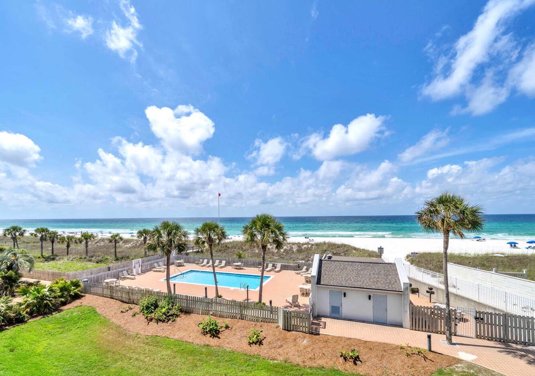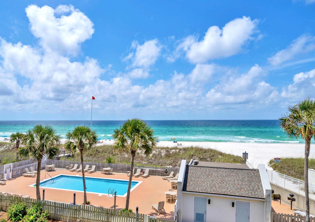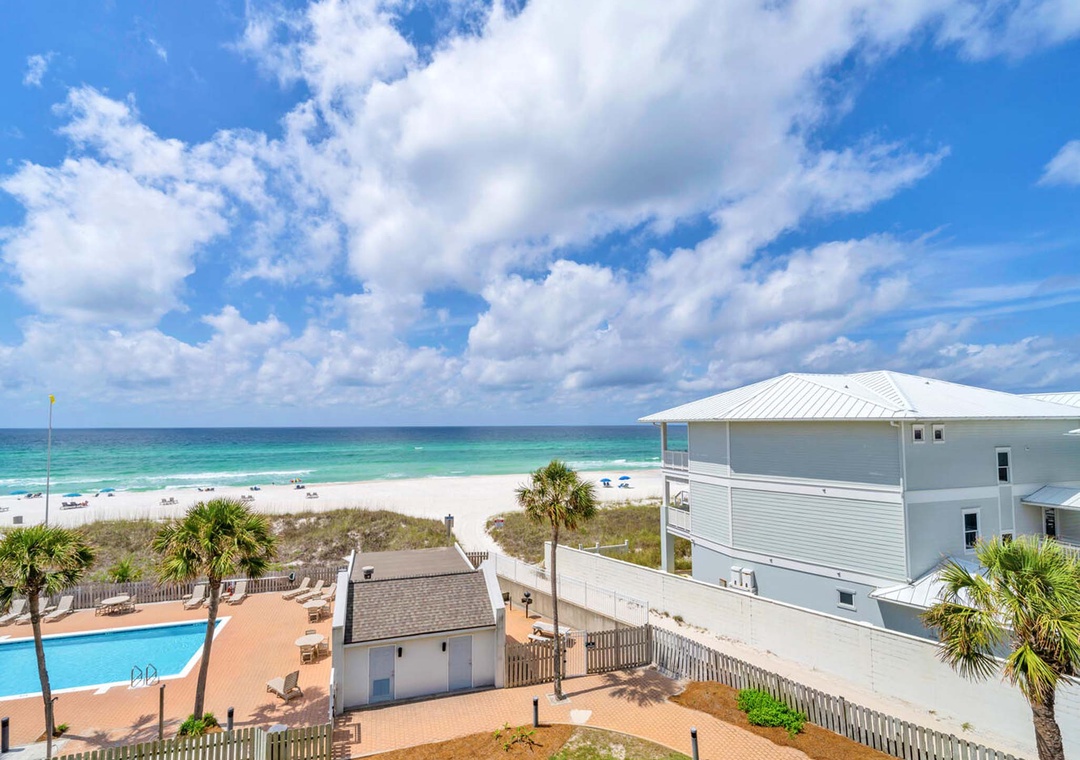 We really enjoyed staying here, and would stay again. It’s a super short walk over the dune to the beach, which is quiet, pristine sand, and a nice pool. A balcony on each floor, with a great view of the ocean. Only thing to note is that while the kitchen was well stocked with dishes, lots, pans, utensils, there were no cooking basics except salt and pepper) (no coffee filters, olive oil, etc), but there’s a Publix across the street for anything you need.- Reviewed On: 9/3/2024