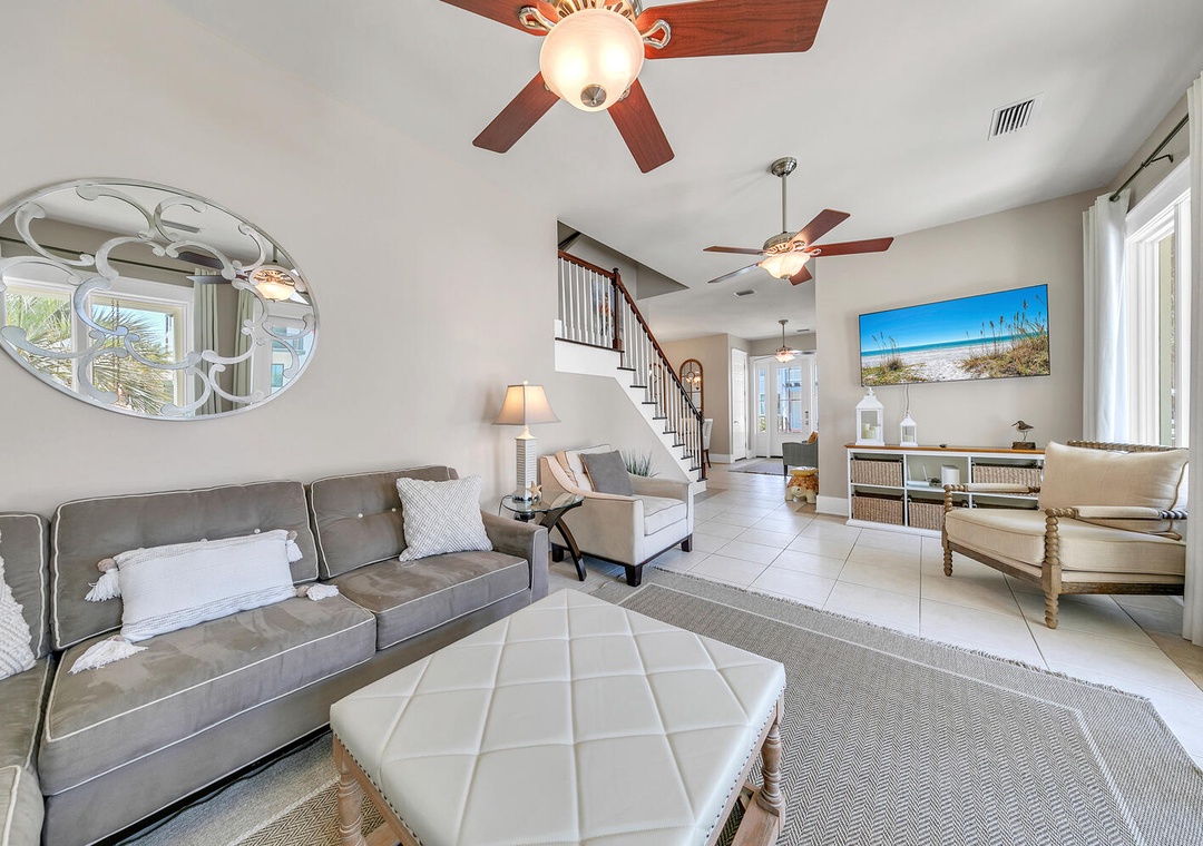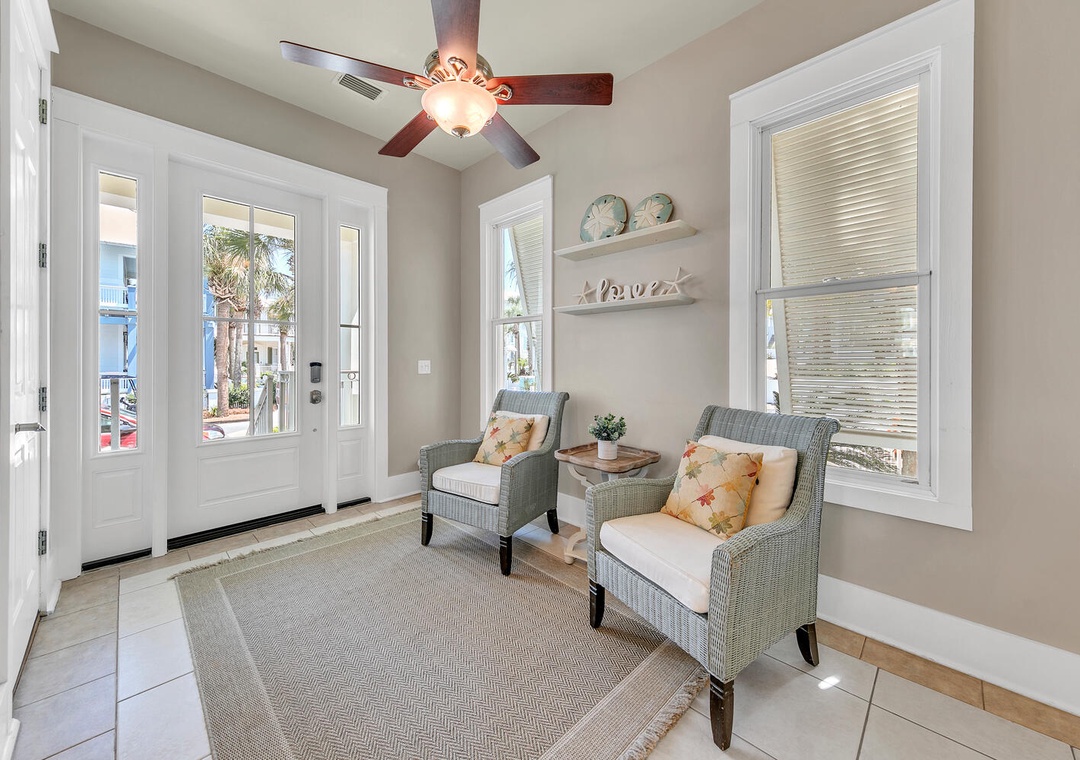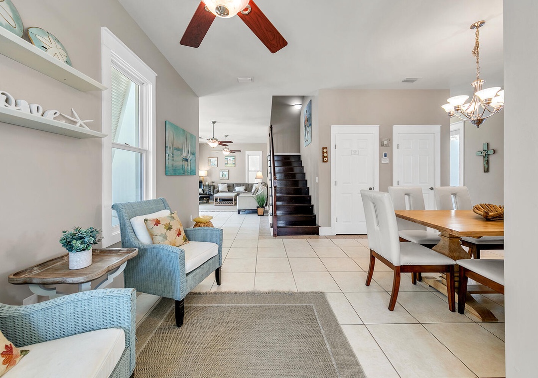 Welcome to your home away from home at Relax Awhile. This home is perfect for a family gathering where you can share both the Main House and the Carriage House. It is a 5-bedroom 4-bathroom located right by Carillon Beach and is sure to make your next vacation trip a memorable one! The Main House consists of 2 king bedrooms and 2 queen bedrooms. The Carriage House has a Murphy bed in the living room, 1 queen bedroom, and a twin-over-bunk bed with a twin trundle. Between both houses, this property can comfortably sleep up to 14 guests! The Main House and Carriage House each have their own fully stocked kitchen, equipped with everything you need to cook a lovely dinner or prepare breakfast to fuel up for the next beach adventure. Enjoy your morning coffee on the porch swings while admiring the relaxing aesthetic of this lovely private beach community. Carillon Beach's private Dune Walkover #1 beach access is conveniently located right across the street. Carillon Beach has 3 shared pools for guests to enjoy along with basketball, tennis, and pickleball courts that are available on a first come, first serve basis. Come make Relax Awhile a family vacation tradition for years to come!