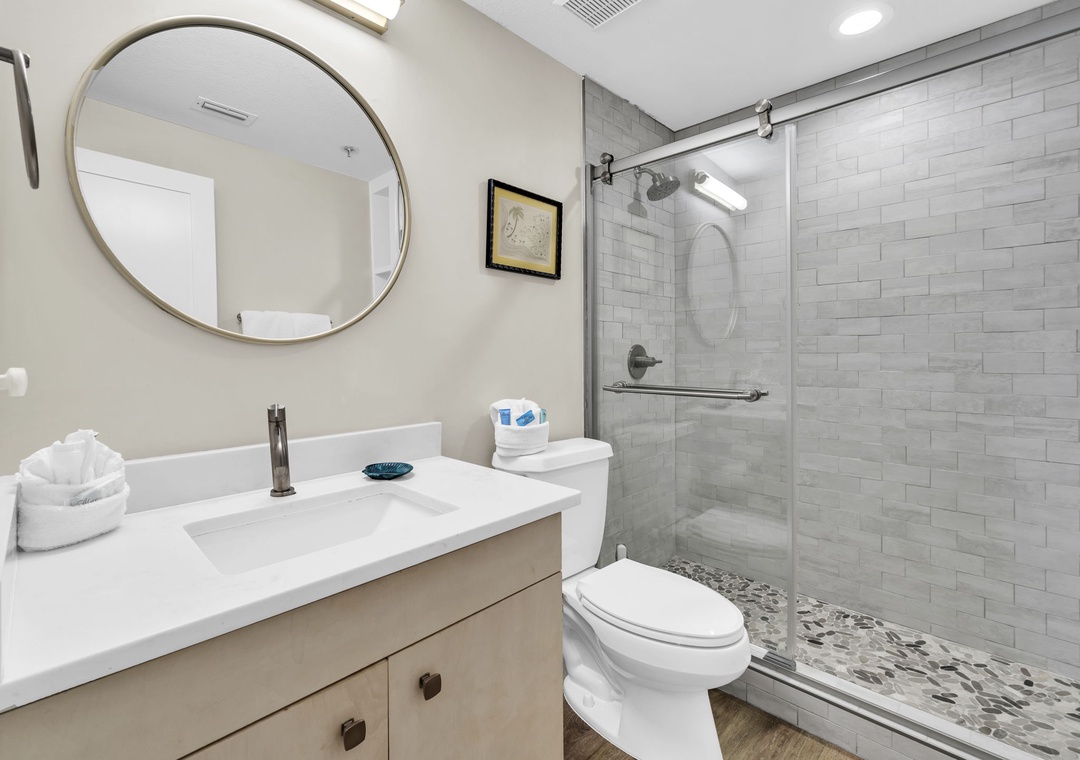 We absolutely loved our time in Sago Sands 301! When we rented it we didn't know it was being renovated, so it was a nice surprise when we got there! It's a beautiful condo! The view of the ocean is amazing! We sat on the large balcony every chance we could, and enjoyed the ocean view from inside as well. There are 2 designated parking spots for you so parking was never a problem. The elevator is right outside your door, and we never had to wait for it as there's only 8 units in the whole place. Once you get off the elevator on the first floor, you walk around the side of the condo, down some stairs to the beach. Probably takes you 2 minutes. The condo was very spacious with lots of room for the 6 of us. The living room is so big, with a nice tv, and we loved having 2 full sofas. The master is huge with a big bathroom and closet, and the bedroom with the twin beds is very big as well with a nice bathroom. The third bedroom is a lot smaller, with not a lot of space to put your stuff. If the bed were not angled I think it would be better. But don't let that keep you from staying there. The beds were very comfortable too! We loved biking & walking to all the shops and restaurants. I would not recommend renting from Butterfly Bikes across the street. They rented us an unsafe golf cart for the week, and after going back twice to have them fix it, and only being able to use it about 3 times all week due to this, they would not give us any money back. Just not good customer service when you're paying them for a golf cart that is supposed to be safe and working properly. The only downside to this condo would be that it needs curtains in the bedrooms. It has blinds, but the sun is super bright in the mornings, and the light outside the room by the elevator shines in at night. We ended up putting trash bags in the windows, but thankfully that's an easy fix for the owners. All-in-all, we will definitely stay here again! Can't wait to go back!- Reviewed On: 7/11/2023