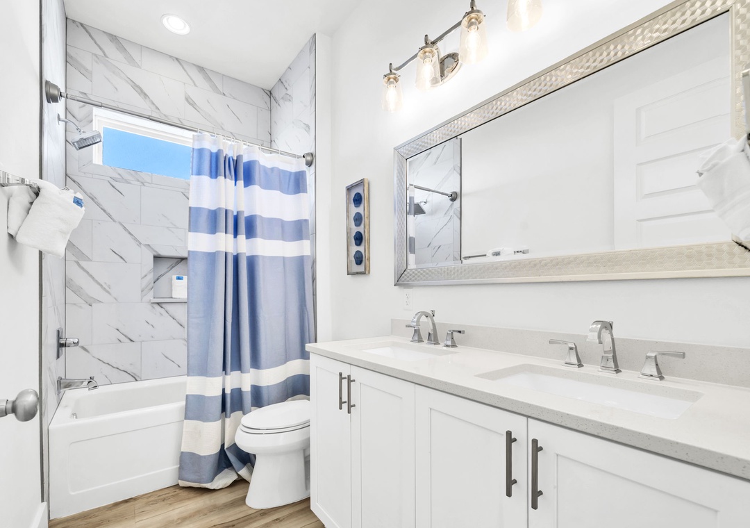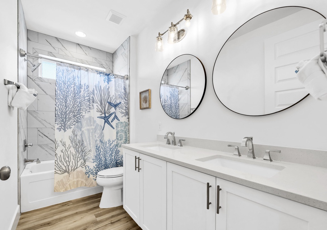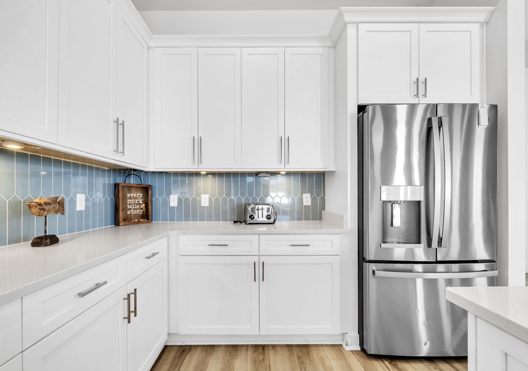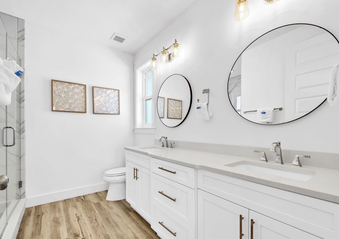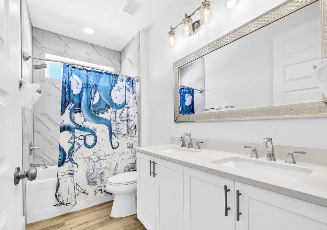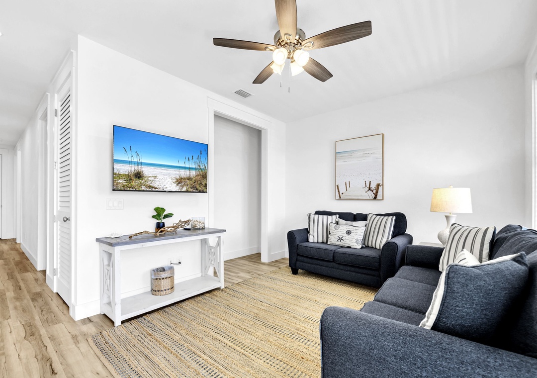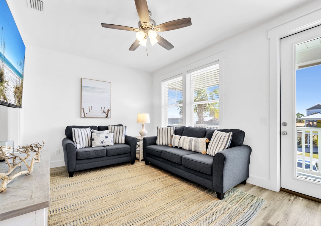 Salty Blue comfortably sleeps a crowd with six well-appointed bedrooms spread across two floors. On the first floor, you'll find a bedroom with a full-over-full bunk bed and another with a king bed. Upstairs, the master suite features a king bed, joined by two additional king bedrooms and another full-over-full bunk room, perfect for kids or extra guests. Whether you're planning a beach vacation or a relaxing retreat, Salty Blue offers the perfect blend of comfort, style, and fun.