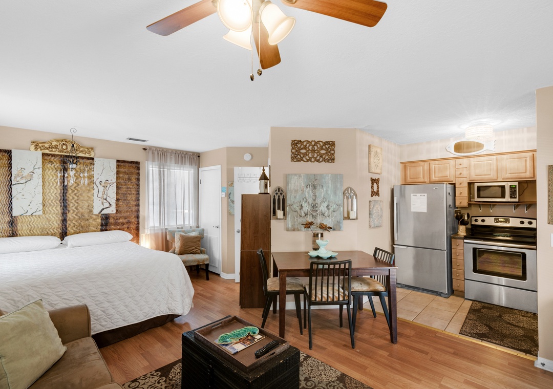 Sandcastle Villas #24 is a lovely studio condo located in the beautiful Panama City Beach. This studio is equipped with a King Bed, a sofa in the living room, and one bathroom, so there is enough room for you to vacation comfortably. Enjoy the day by relaxing at the beach, located only a block away, or lounging by the pool. Enjoy the many restaurants close by, or take advantage of the kitchen and enjoy a nice home-cooked meal. Sandcastle #24 has everything you need to make long-lasting memories of Panama City Beach.