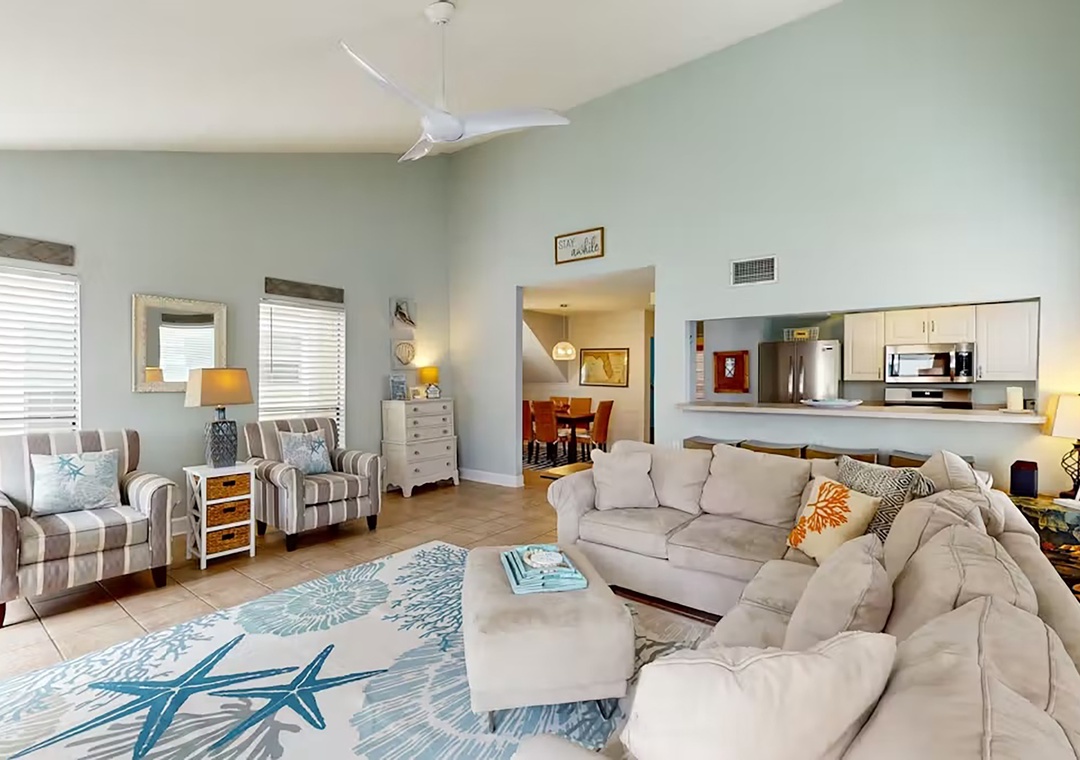 Welcome to Sandpiper Cove 19, a bright and inviting 3-bedroom, 2-bath coastal retreat designed for comfort and fun. The open floor plan welcomes you in and is perfect for entertaining, with a spacious living room ideal for relaxing and making memories with family and friends. The adjoining kitchen is fully equipped for preparing homemade meals and beach snacks, complete with a dishwasher for easy cleanup. Step out onto the spacious balcony with outdoor dining overlooking the tennis courts, or enjoy the covered ground-floor patio featuring another dining area, TV, and gas grill—perfect for summertime barbecues. With two bedrooms on the main level and a private king master suite on the top floor, this condo offers plenty of space and privacy. Sandpiper Cove boasts 1,100 feet of deeded beachfront with access to both the Gulf of Mexico and Destin Harbor, along with incredible amenities including five pools, three hot tubs, tennis courts, a par-3 golf course, bocce, shuffleboard, pickleball, a boat launch and marina, and two on-site restaurants. Come see for yourself why the fun never stops at Sandpiper Cove 19.