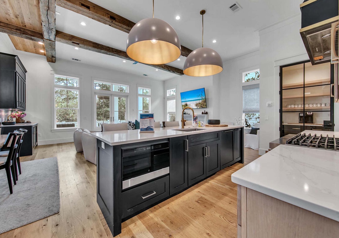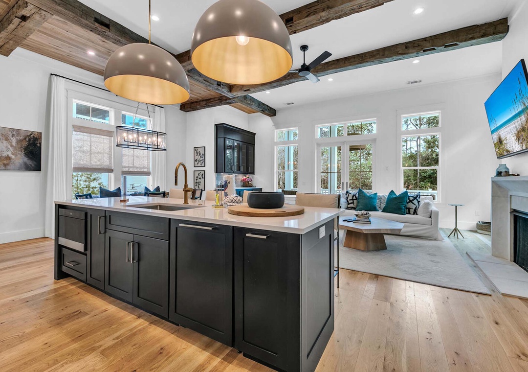 Treat yourself to a getaway at Sandpiper. A luxurious 3 story 5-bedroom 5.5-bathroom home located in the Crossing District of Watercolor. This home has a beautiful outdoor entertainment space boasting a private pool. On the first floor, you will find a king guest room with a private bathroom. You will find the great room that has stylish wood floors and a kitchen that is any cook's dream on this floor too. On the second floor, you will find 2 king guest rooms and a king master bedroom. All with private bathrooms. The master bedroom has access to a private balcony overlooking the pool. Third floor you will find 4 queen beds and a bonus room that has foosball and plenty of seating for endless family fun. Come start making memories at Sandpiper that will last a lifetime.