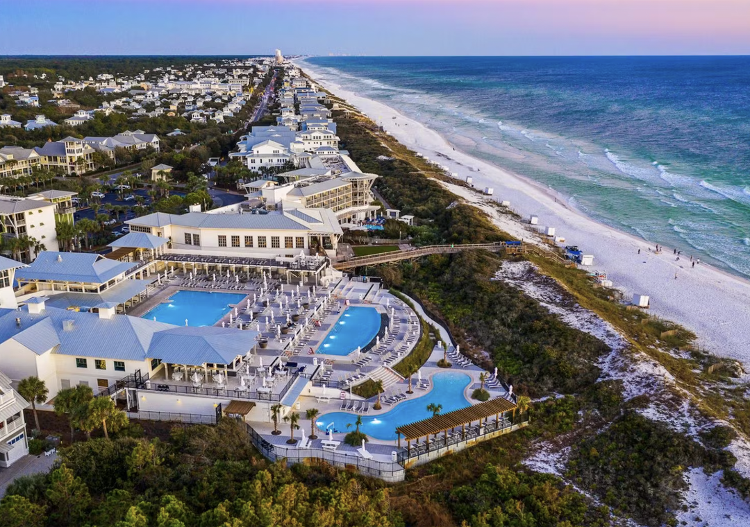 Guests staying in Watercolor will have access to the newly expanded Watercolor Beach Club. It features a new main pool and lounge area, a second pool deck with additional lounge seating, and a third pool with zero-entry, as well as an enhanced Watercolor Grill and a new sunset bar, Costa Chica. All have scenic views of the Gulf of Mexico.