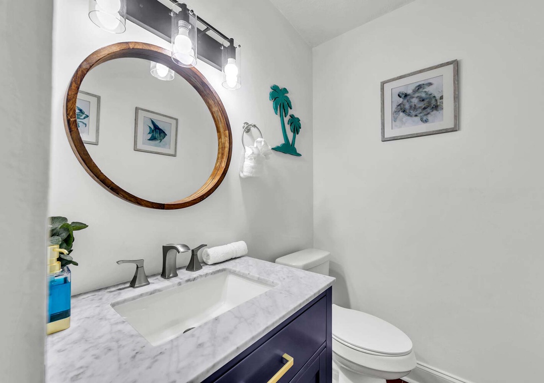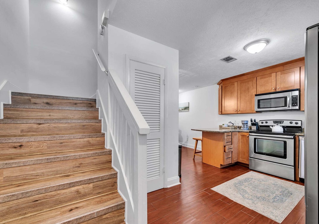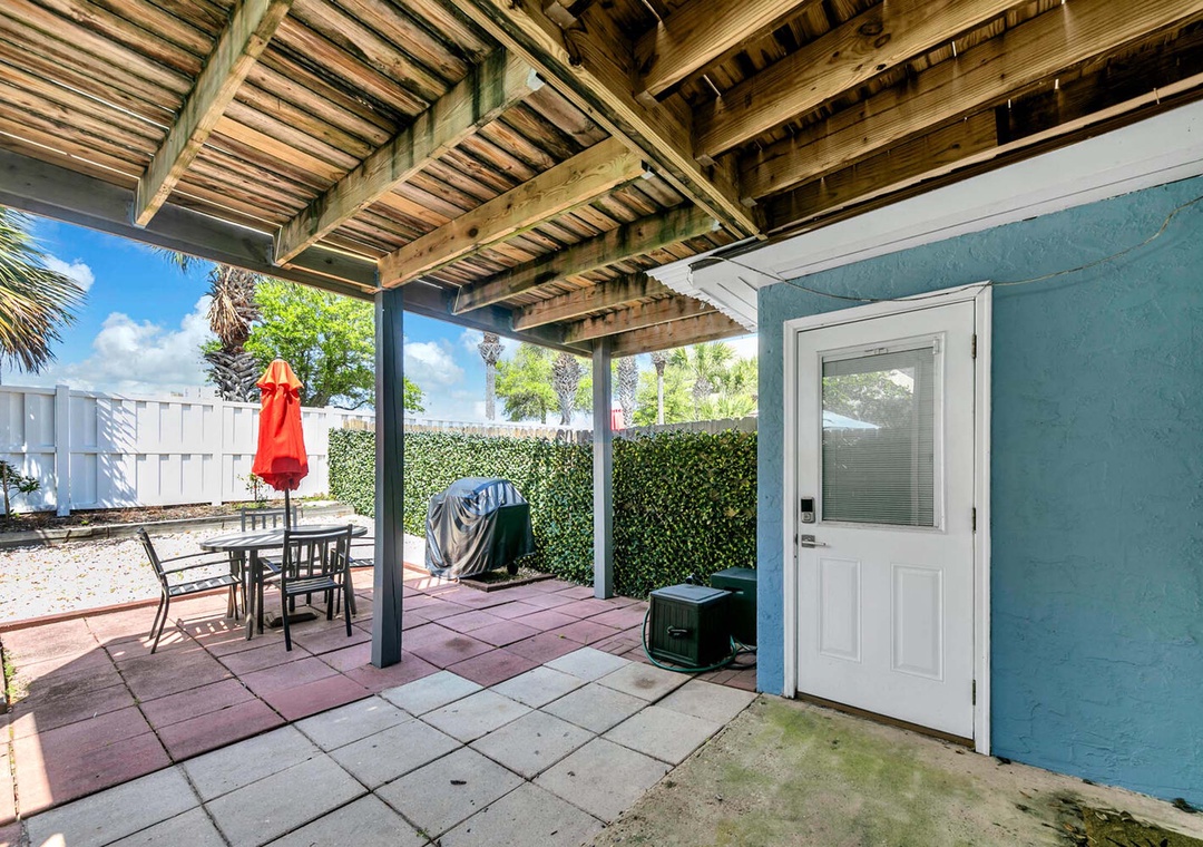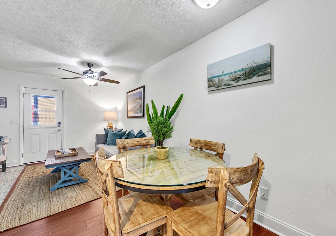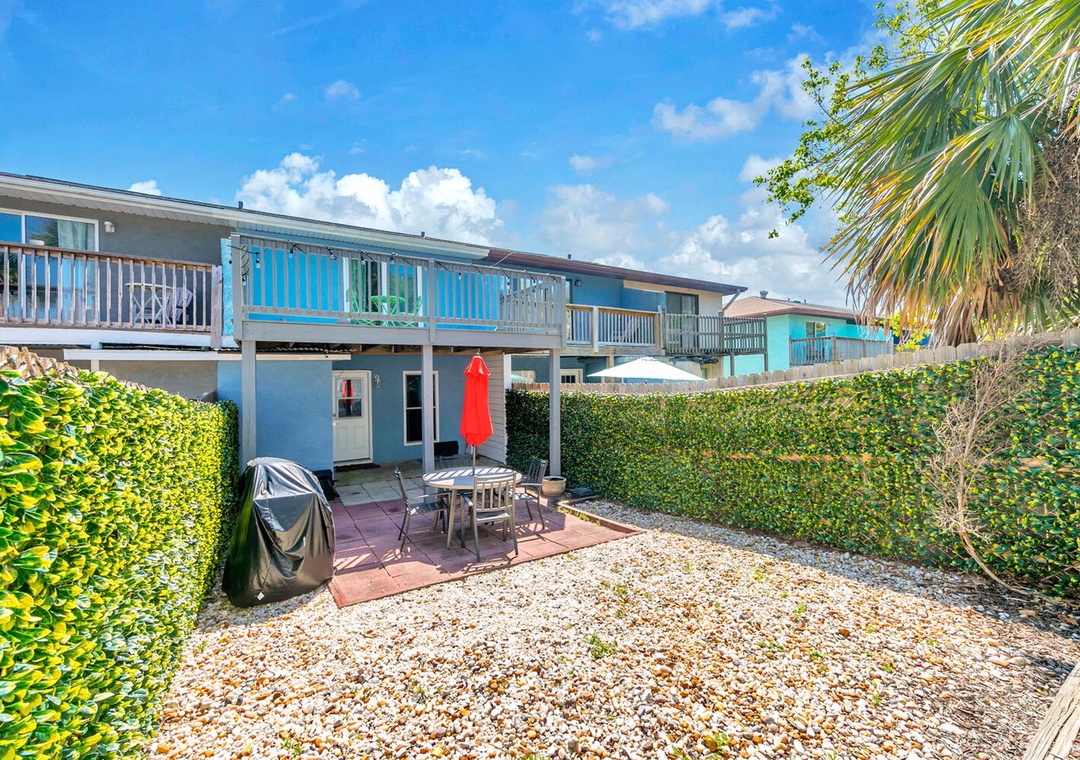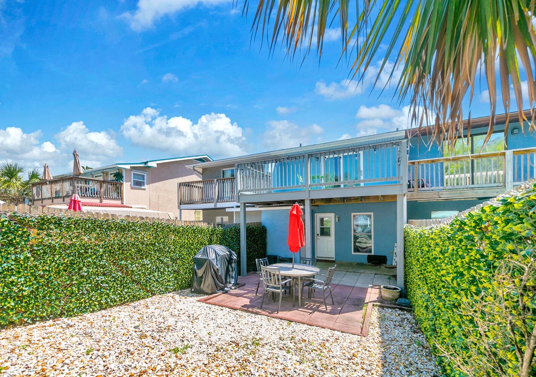 The first floor features an open-concept living and dining area, a fully-equipped kitchen, and a convenient half bath. Enjoy your own private back patio with plenty of seating, the ideal place to unwind after a fun day at the beach or shopping at the nearby Pier Park.