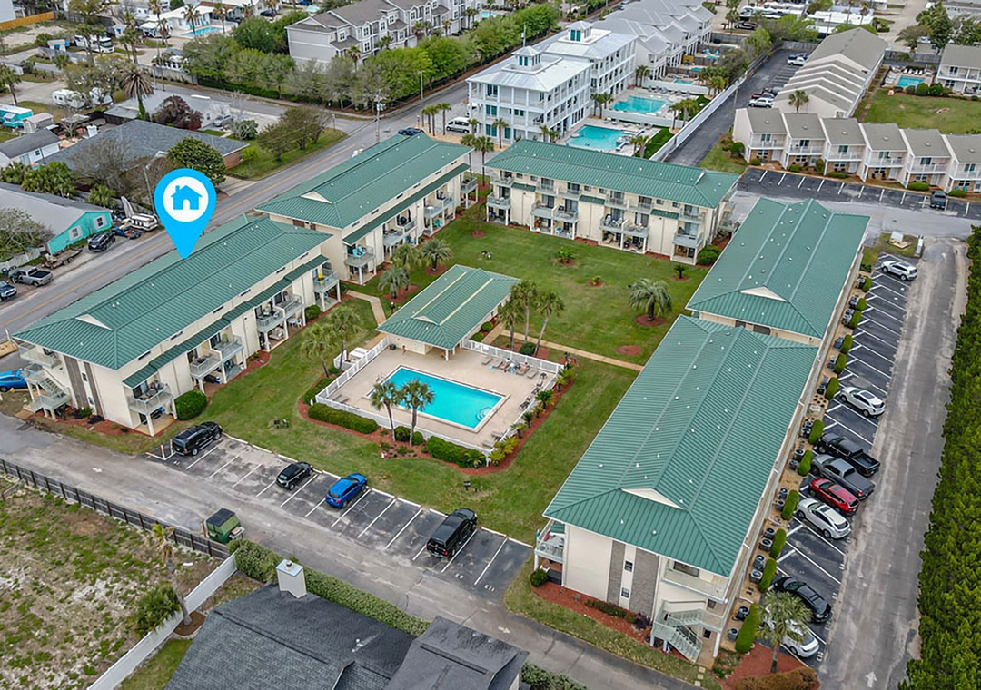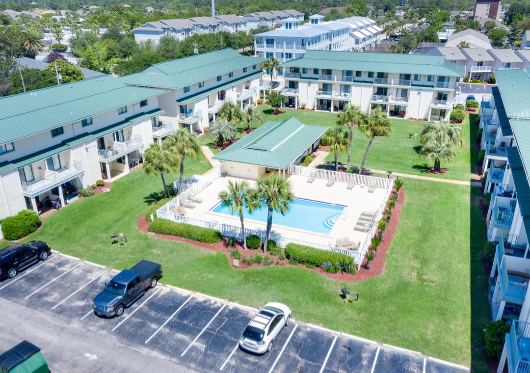 Located just a couple of blocks from the Miramar Beach access and Pompano Joe’s, you will find Sandprints. This low-rise complex is designed as a horseshoe with the gated pool in the center and is tucked into a beach neighborhood. It boasts a short walk to the beach, along with several restaurants nearby. Each unit features a full kitchen along with a washer/dryer for your convenience. For the budget conscious guest, it is a home run! The complex is also convenient to the Silver Sands Outlets, Destin Commons, Village of Baytowne Wharf, and the Grand Boulevard Town Center. Discover why so many guests return to Sandprints year after year!