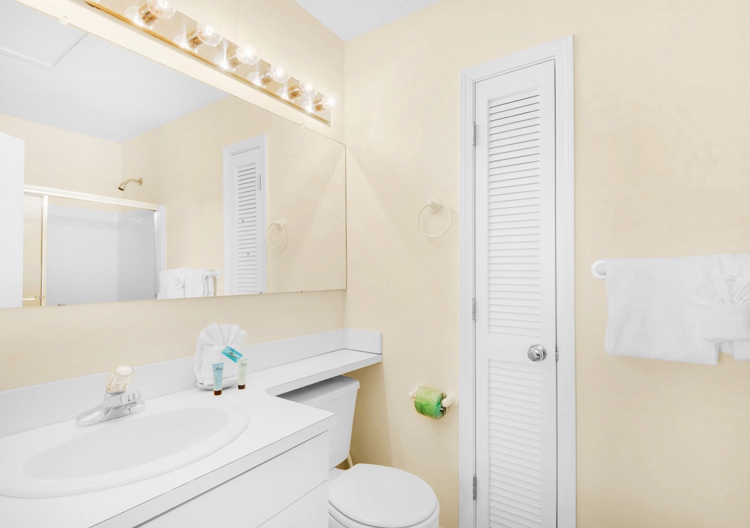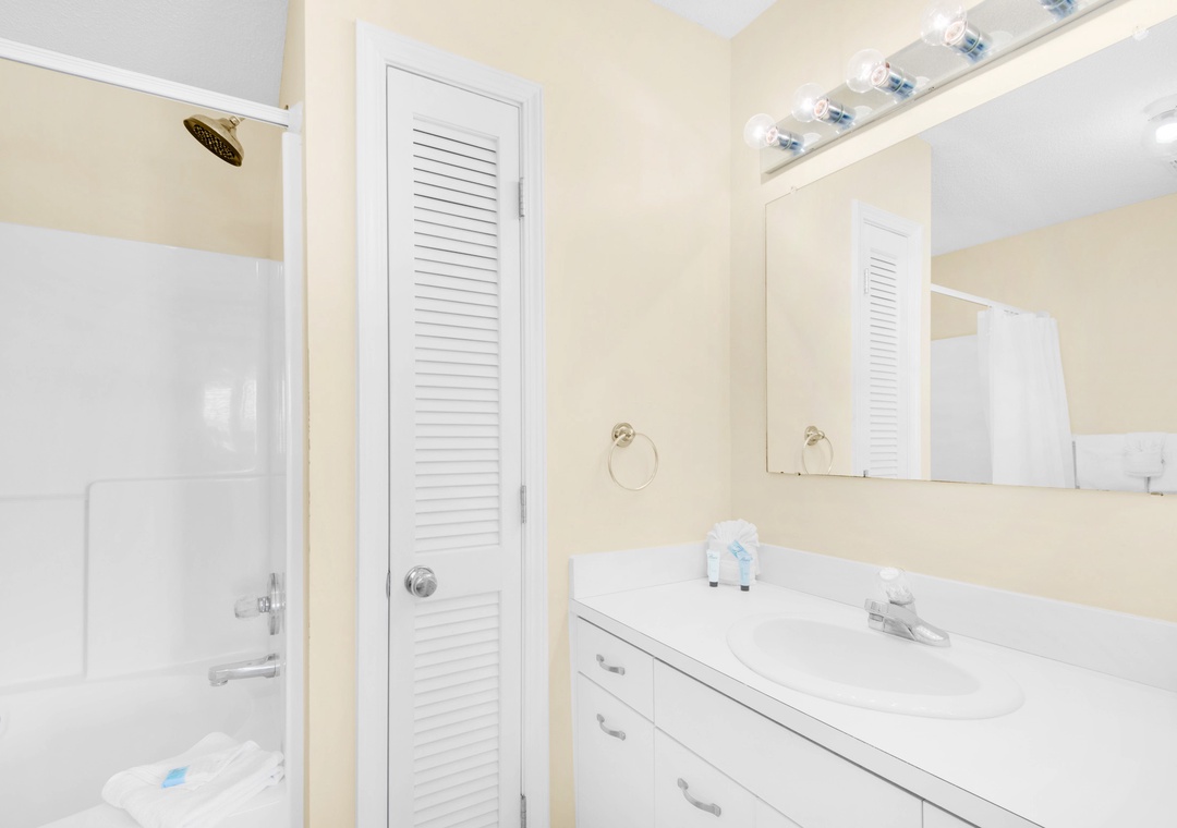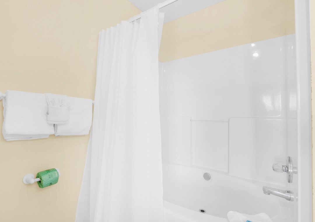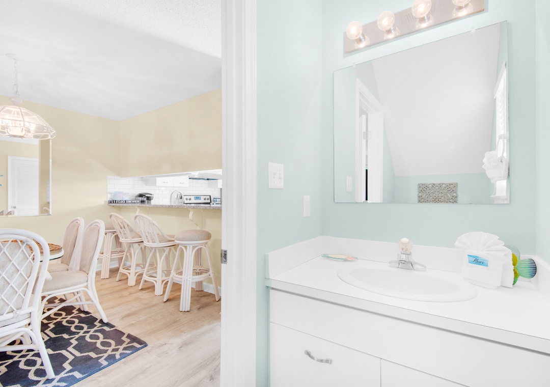 This place is exactly as described. You can definitely walk to the beach, but there is also convenient parking right beside the beach. If you check out the signs at the beach, you can text to get updates on beach conditions, which was super handy since we had a few red flags during our stay. You will park in the spot for your unit (there's a parking pass on the kitchen counter for your use). Unmarked spots can also be used and there's a pass for an additional car to use those as well. We checked in late and had no issues at all. You get a code to use to unlock your door and we never had issues. The place was really clean. There are a few games for kids to play (mine loved bingo, haha!). A drawer with a pen, scotch tape, scratch paper. There isn't salt/pepper but there is a little spice rack that has just about anything you'd need. As far as kitchen stuff, they have everything - including a muffin pan and pizza pan/pizza cutter. Very impressively stocked. You do get netflix which worked fine for us as well. The couches were very comfy to hang out on. Both bedrooms have attached bathrooms (and a 1/2 bath downstairs). One of the bathtubs is a garden tub, and the other is a regular one (both have showers). Just fyi in case anyone in your party has trouble stepping up to get in the shower. In the bedrooms there are switches for both the fan and light, so that's nice on those humid nights. The only hiccup in our stay was the can opener doesn't work, but we made do. The washer/dryer is super convenient in a closet off the kitchen and works well. We cooked all our meals and the stove/oven/microwave worked great. There are grills in the lawn area by the pool if you want to do that. The pool is not heated, just fyi. Location wise, you are past the traffic really. Close to a Dollar General, Culvers, McDonalds, and Tom Thumb for gas. If you drive down the highway (into the areas with more traffic - also not far though maybe 2 miles), there's a Publix and basically any store you'd need for your stay. On the counter there was a paper towel roll, a small dish soap, and a dishwasher tablet. Each bathroom had a roll of toilet paper to get you started. There are plenty of towels for showering. Before leaving, you put all your towels in the bathtub, put the air on 78, and return the parking pass.- Reviewed On: 3/29/2021