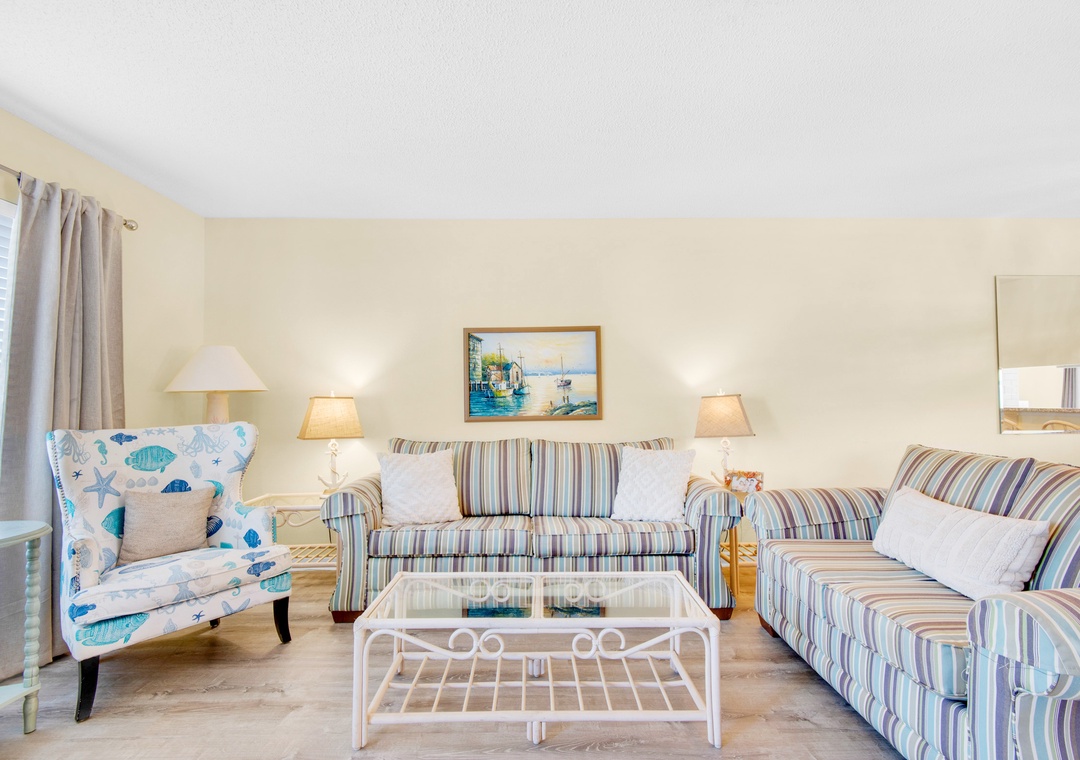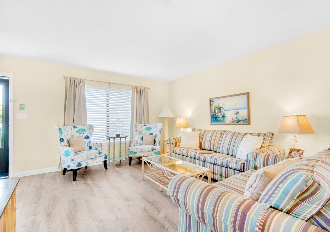 Owen's Oasis at Sandprints is a lovely 2 story townhouse featuring a spacious living room and a queen sofa sleeper, separate dining area, breakfast nook and a full kitchen. Upstairs you'll find a master with a king bed and balcony, as well as a guest bedroom with two twin beds, so this vacation retreat sleeps 6! The entrance to Owen's Oasis is on the 2nd floor, requiring guests to go up a flight of stairs. With just a short stroll to beautiful emerald Gulf waters, one dedicated parking spot just steps away from your door, and a gorgeous, centrally located pool, you’ll have everything you need to make your vacation relaxing and memorable!