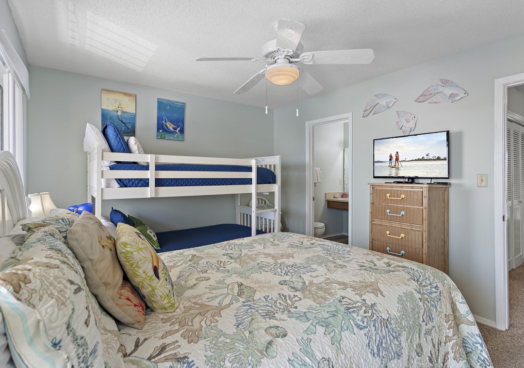 Guest Bedroom: Queen Bed and Twin over Twin Bunk Bed