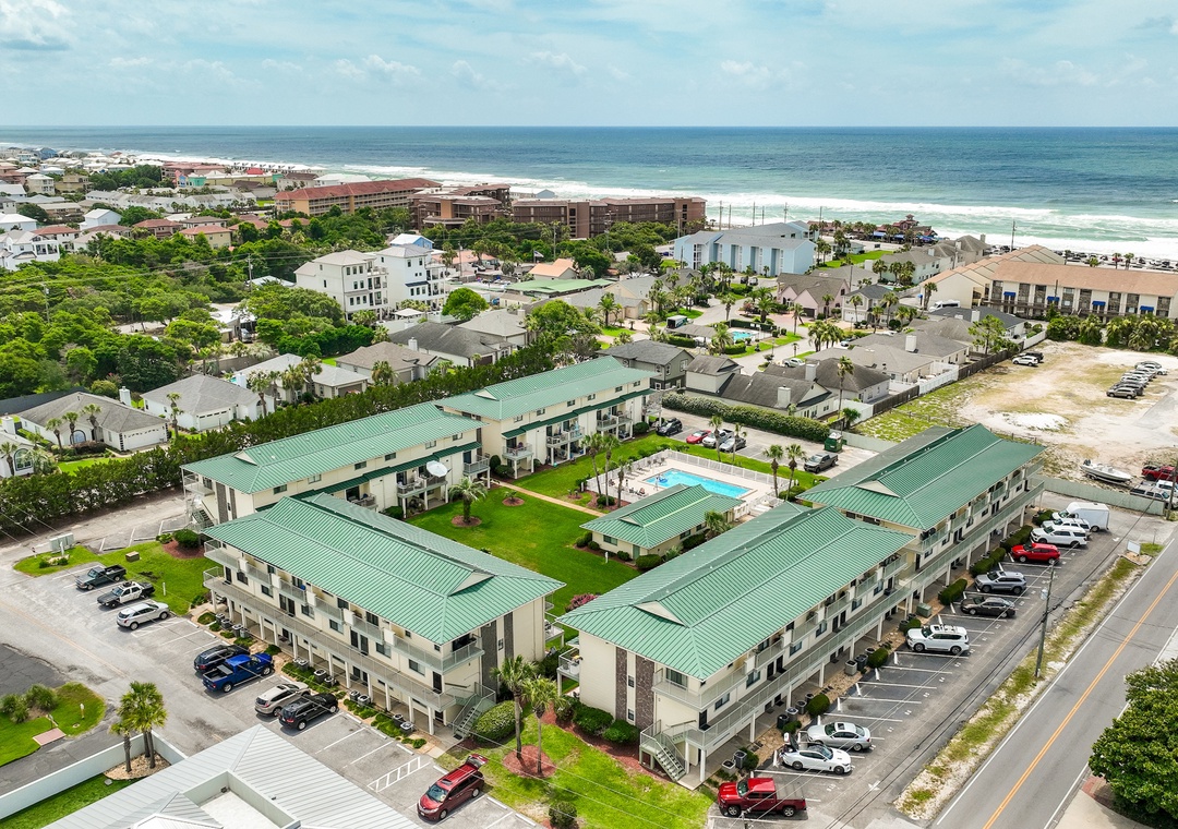 Located just a couple blocks from the Miramar Beach access and Pompano Joe’s, you will find Sandprints. This low-rise complex is designed as a horseshoe with the gated pool in the center and is tucked into a beach neighborhood. It boasts a short walk to the beach, along with several restaurants nearby. Each unit features a full kitchen along with a washer/dryer for your convenience. For the budget conscious guest, it is a home run! The complex is also convenient to the Silver Sands Outlets, Destin Commons, Village of Baytowne Wharf and the Grand Boulevard Town Center. Discover why so many guests return to Sandprints year after year!