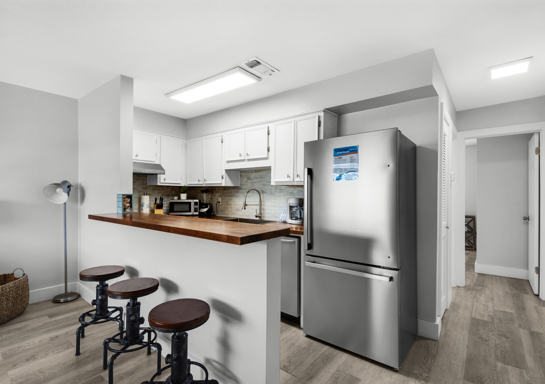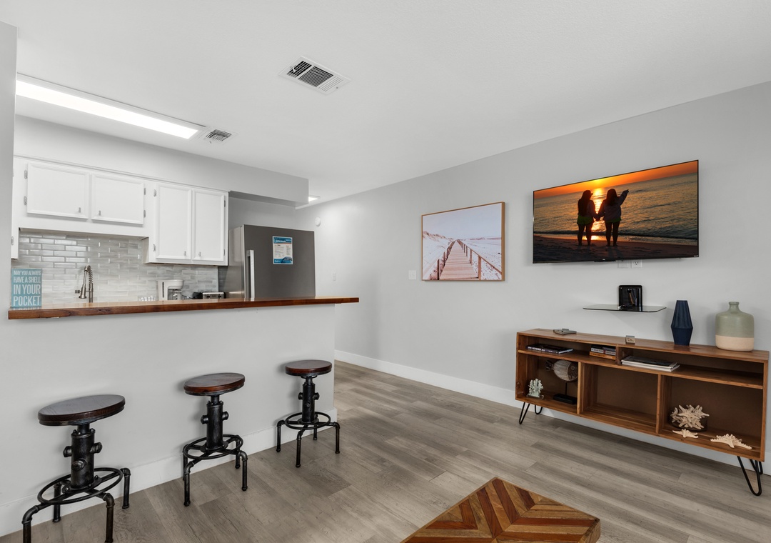 Welcome to Bream Island, a beautiful condo located in the quiet complex of Sandy Pointe. This unit sleeps 4 and is in a great location with nearby restaurants and easy beach access. Indulge in the comfort and tranquility of this newly remodeled condo! This one-bedroom, one-bath condo features a king bed in the master bedroom, and there are two memory foam twin roll-out beds if additional space is needed. Prepare your delicious meals in your well-equipped kitchen. Enjoy easy access to the beach, across the street, for family beach days, sunset strolls, and more. Come find out why Bream Island is the perfect location to unwind!