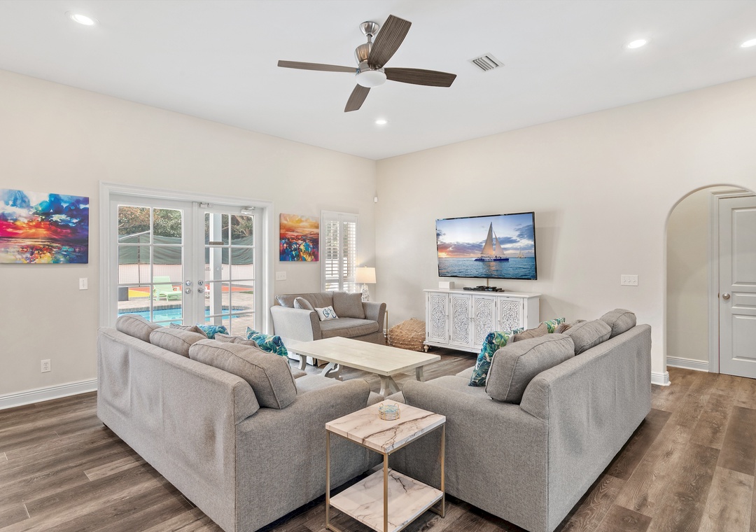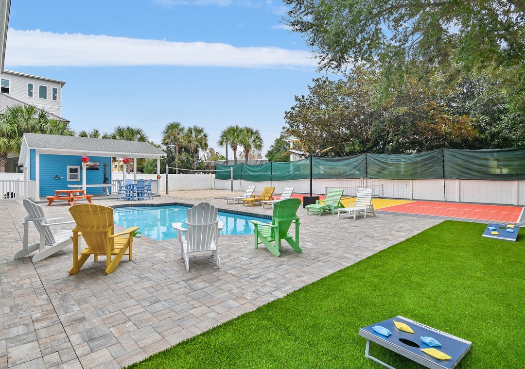 The property's indoor and outdoor spaces provide lots of opportunities for fun! The bunk room provides lots of space for children to play. The great room was wonderful whether play games, working puzzles, dining or watching a game on TV. Outdoors offered the pool, pool table, sand volleyball. The beach was easily accessible with a short walk. The golf cart made it so easy to transport beach gear. It is a wonderful place to stay!- Reviewed On: 1/18/2023