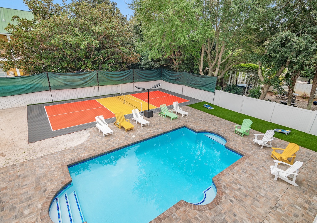 * Volleyball and Pickleball court within Fenced Backyard