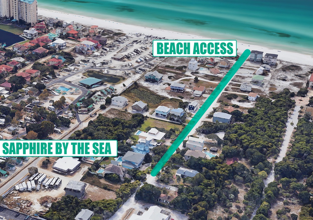Sapphire by the Sea is located in a secluded neighborhood along an old oyster shell road leading to an undisturbed stretch of beautiful beach. It is located less than a mile from the Silver Sands Factory Outlet, the nation's largest designer factory outlet featuring more than 100 name-brand designer stores. Also close by is the Destin Commons with incredible eateries, upscale shopping, a park with pop-up fountains at its center, and favorites like Bass Pro Shops and Hard Rock Cafe.