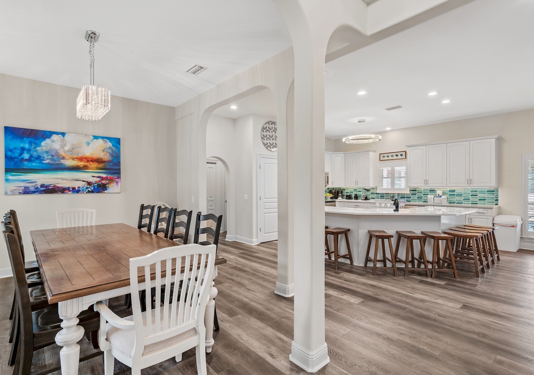 This house fit us perfectly! 13 adults and 6 kids. Backyard was set up very nicely with the pool, pool table and big screen TV. We actually spent most of our time there. Love the location. Not on the beach but a very short drive on the golf cart provided with the house.- Reviewed On: 10/14/2019
