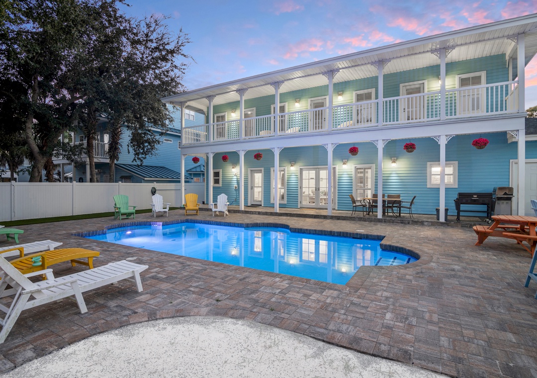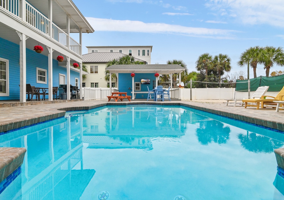 Welcome to custom-built Sapphire by the Sea, your ideal family getaway! This stunning 7-bedroom, 6.5-bathroom home boasts a wealth of family-friendly amenities, including a private pool, private pickleball court, beach volleyball court, an outdoor pool table, and a Blackstone grill, all set in a spacious yard. With private beach access just 350 yards away at Tang-O-Mar, you’ll be soaking up the sun in no time. The gourmet kitchen features an inviting island perfect for gatherings, while the first floor welcomes you with a grand two-story entryway featuring a Juliette balcony and two king master suites. The living room includes a cozy sleeper sofa, and there's convenient poolside access from a half bathroom. On the second floor, you'll discover guest bedrooms that are both spacious and thoughtfully designed. Bedrooms 1 and 2 each have two queen beds and balcony access, while bedroom 3 features twin-over-full bunk beds. Bedrooms 4 and 5 offer comfortable queen beds, ensuring everyone has a restful retreat.With accommodations for up to 20 guests, Sapphire by the Sea is the perfect hidden gem for creating unforgettable beach memories with family and friends!