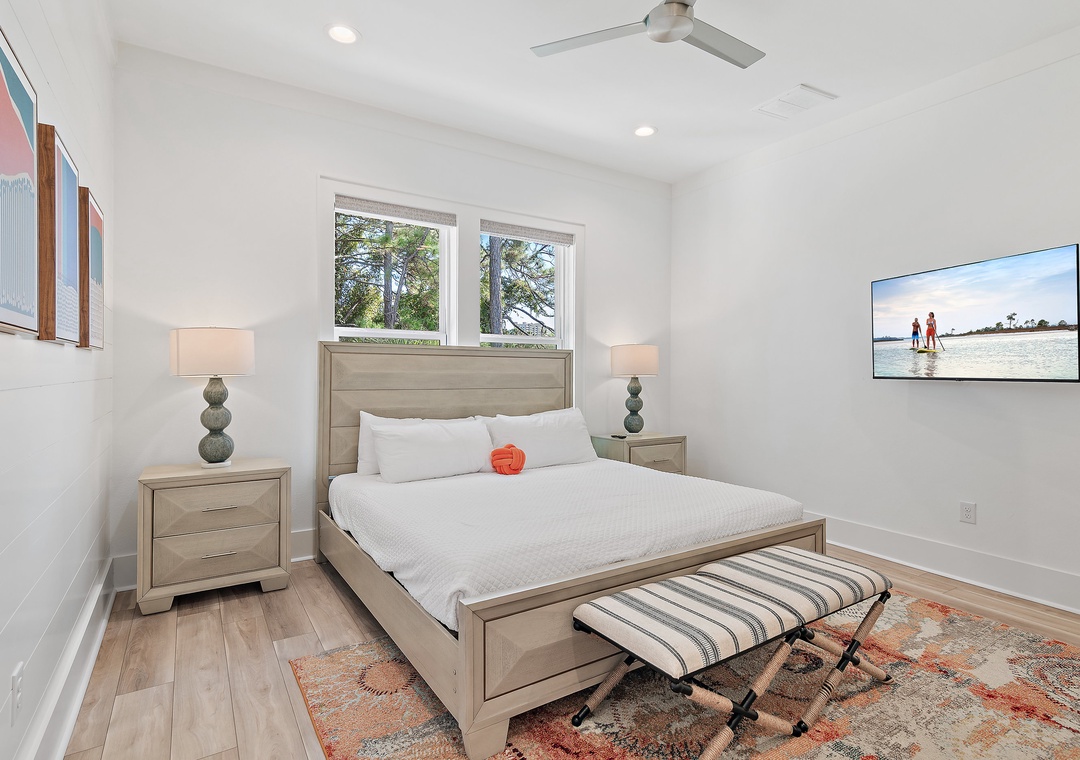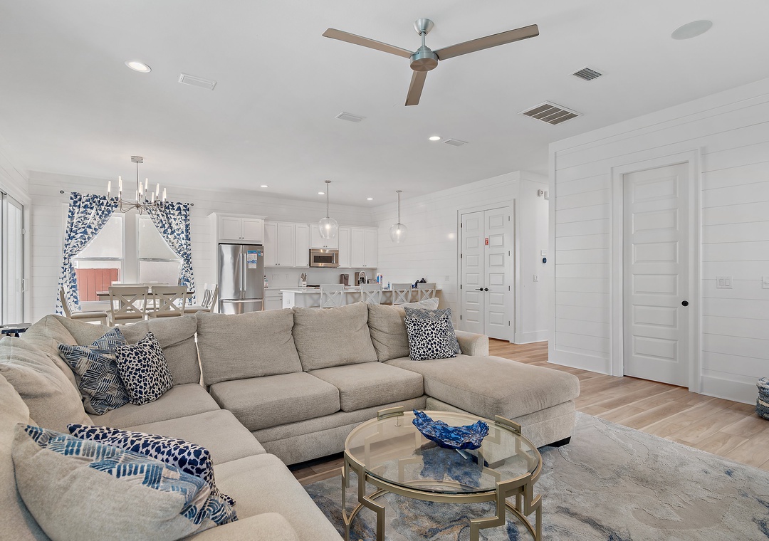 Experience the ultimate beachside escape at Scattered, Smothered, & Covered, a beautifully designed 6-bedroom, 6.5-bath vacation home located in the exclusive Villas of Frangista. Perfect for large families or group retreats, this spacious home comfortably sleeps up to 24 guests. Just a short stroll or complimentary golf cart ride away from the sugar-white sands and sparkling emerald waters of the Gulf, this home offers both convenience and coastal charm. Inside, you’ll be welcomed by an open concept living space filled with natural light, soaring ceilings, hardwood floors, and elegant coastal décor. The gourmet kitchen is fully equipped with stainless steel appliances, granite countertops, and everything your group’s chef needs to prepare meals with ease. Step outside to your own private pool—perfect for sunbathing, lounging, or unwinding after a day at the beach. Whether you’re planning a relaxing family vacation or a memorable group getaway, Scattered, Smothered, & Covered offers the perfect blend of style, comfort, and location to enjoy the best of Miramar Beach.