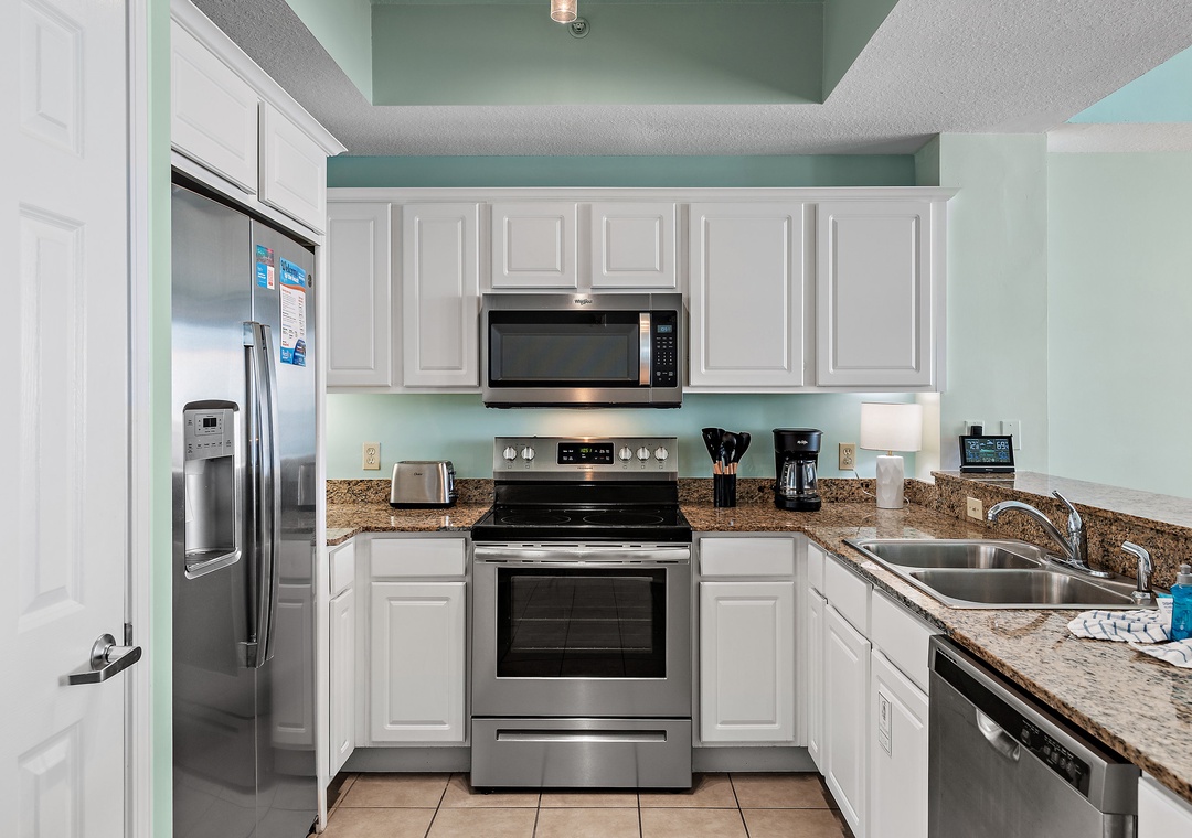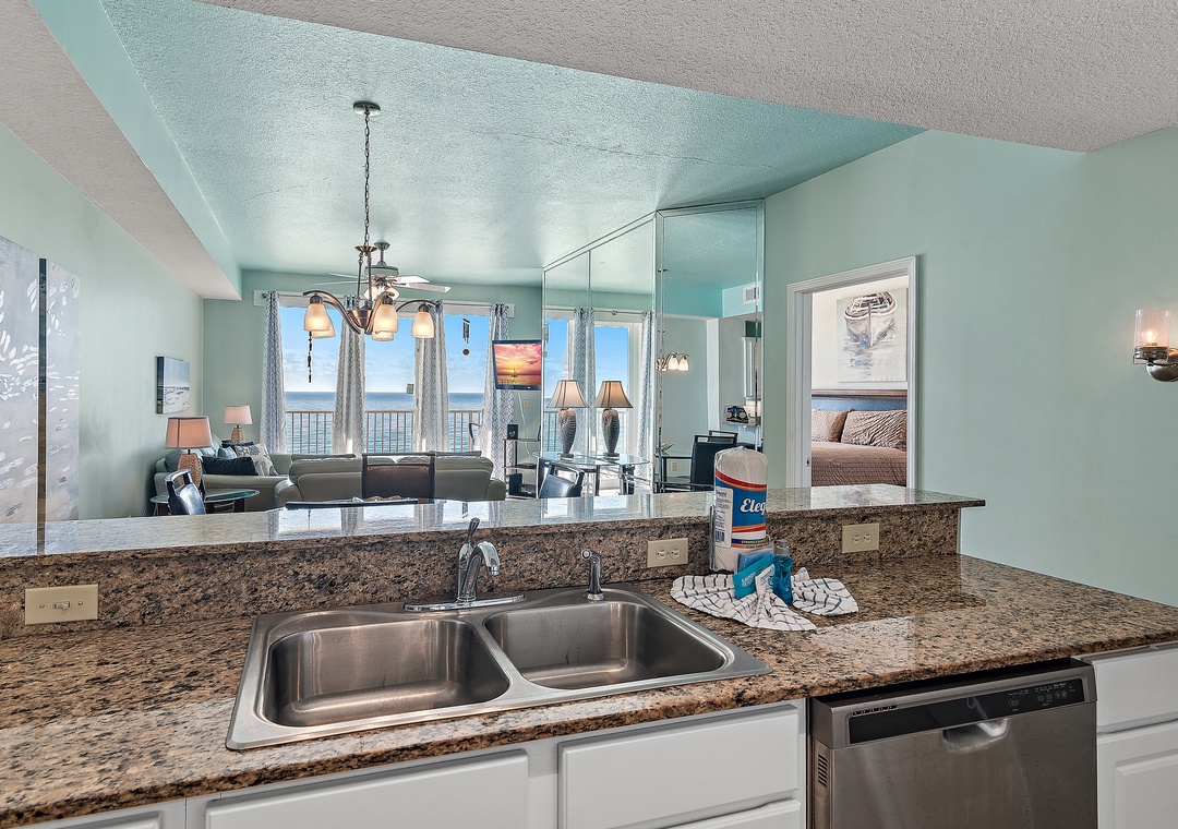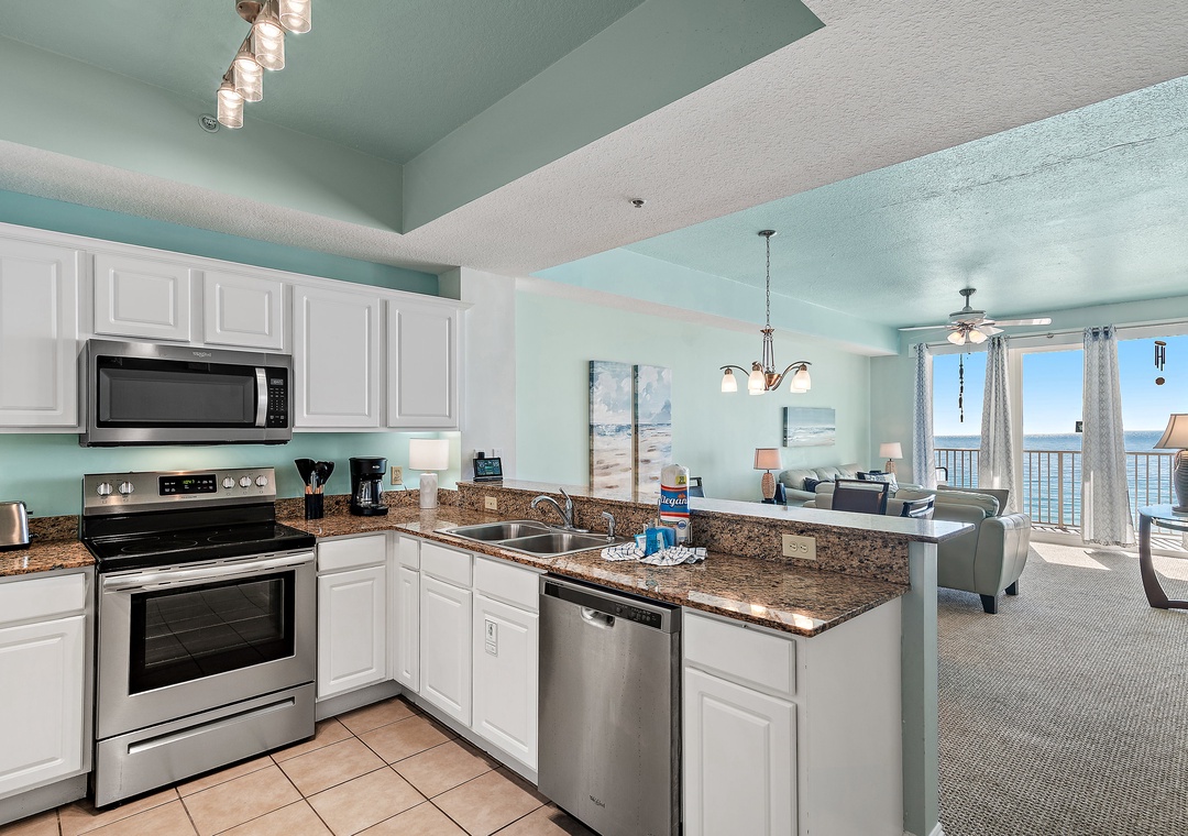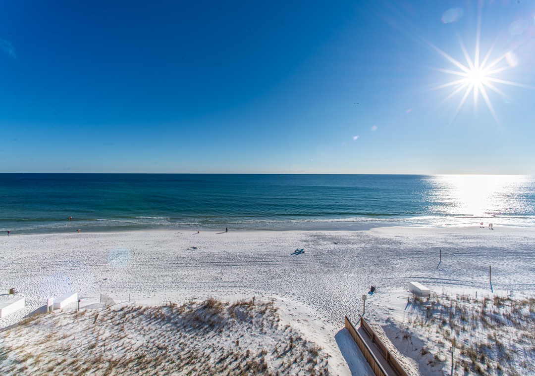 The condo was spacious and beautiful, and perfectly situated on the most spectacular, quiet, white sand beach. There is a large and inviting balcony with a variety of chairs and a table. The condo location is perfect for finding restaurants, grocery store, pharmacy, shopping, etc. We didn't do any cooking while we were there, but there were plenty of glasses, utensils and dishes, and the dishwasher worked well (a bit loud though!). While we didn't use the washing machine, having the dryer was really great so we could dry damp towels, etc. If you are planning to use the adorable "bunk room", you might want to consider bringing a small fan, as it got a little stuffy in there. The wi-fi worked seamlessly for us. Communications with the rental agency were super fast, and their staff was very courteous; they even brought us extra blankets one night, with a smile! Check in and out was very simple. You won't regret staying at this condo, and I would easily stay here again!- Reviewed On: 3/11/2022