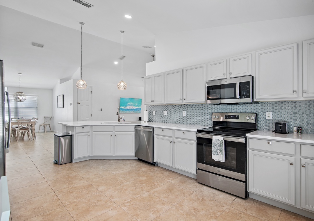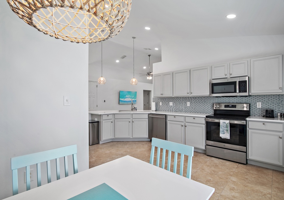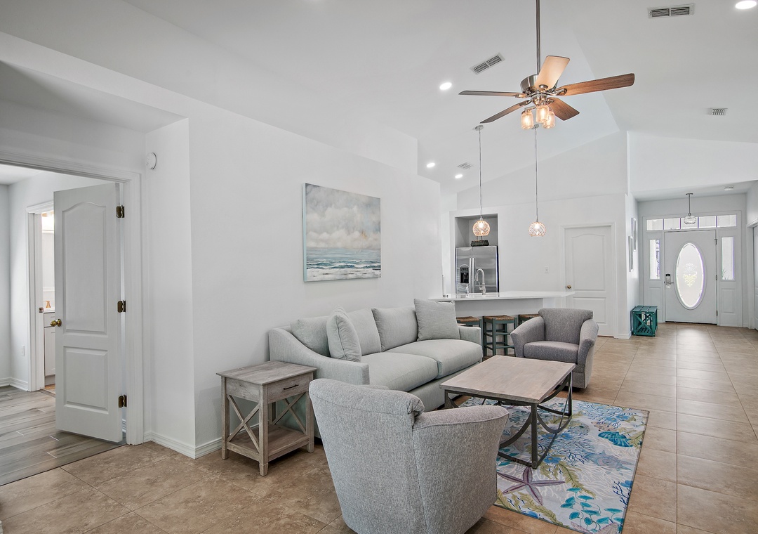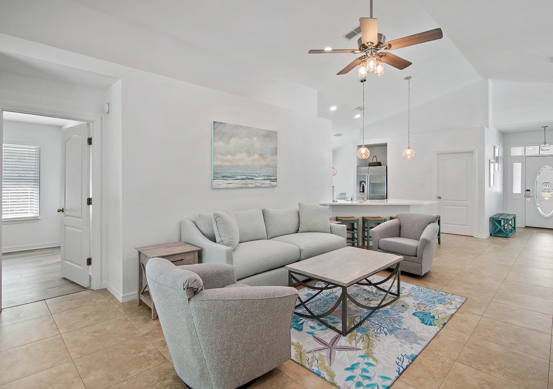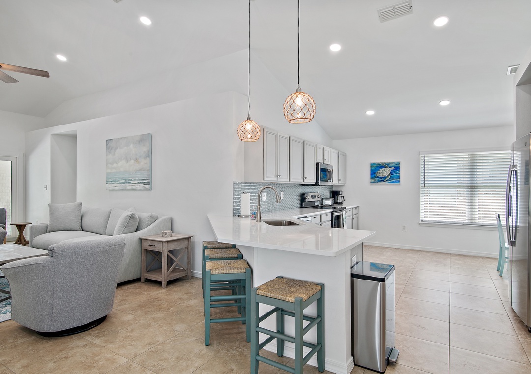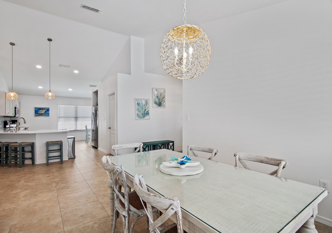 Welcome to Sea Glass a 4BR, 2BA home in the gated Paradise Retreat community, only a short walk to the private, gated beach access. This luxe coastal retreat offers an open floor plan for the kitchen, dining, and living rooms which makes it perfect for entertaining or spending time with family. This home sleeps 8 guests comfortably with a Master King Bedroom with an ensuite bathroom, one queen bedroom, one twin over full bunk bed bedroom, and a bedroom with 2 twin beds. Sea Glass will definitely make you forget all about work and focus on all the fun memories waiting to be made!