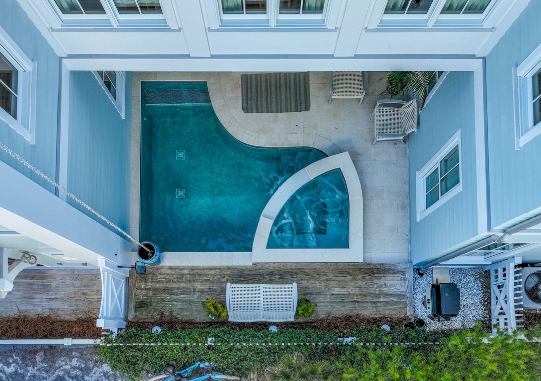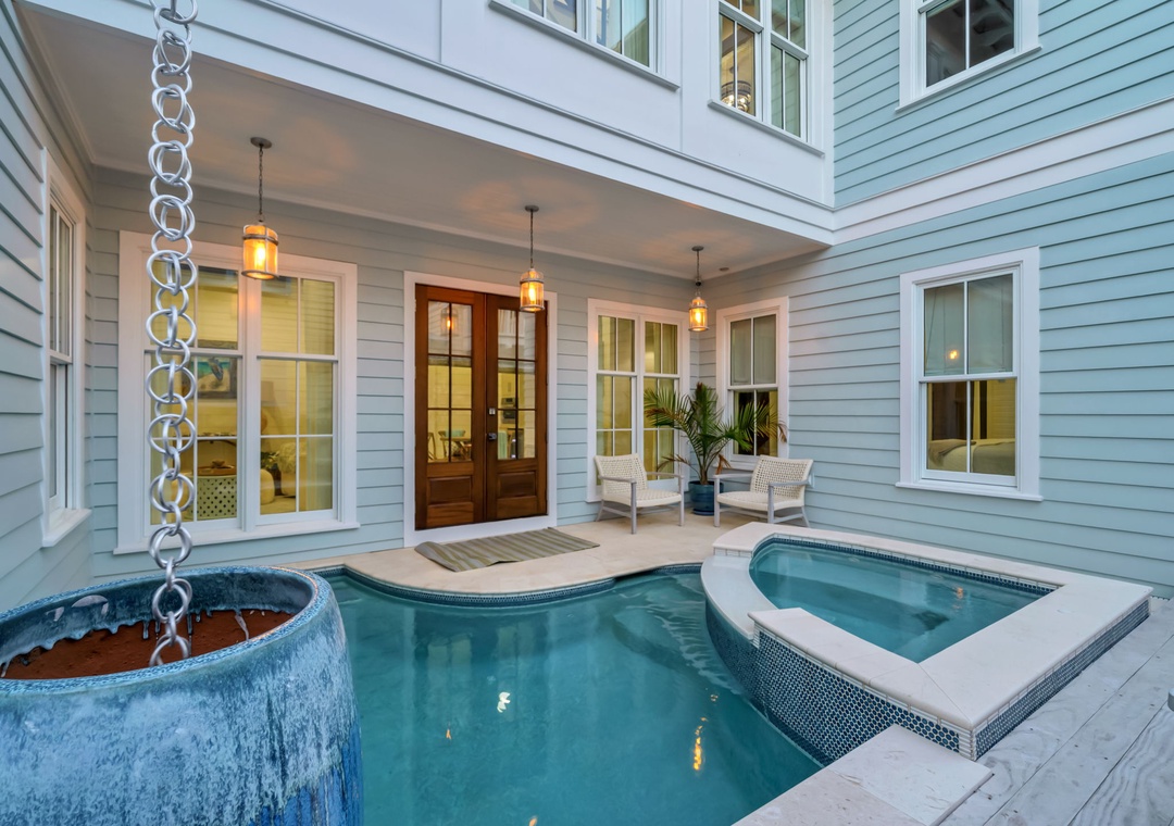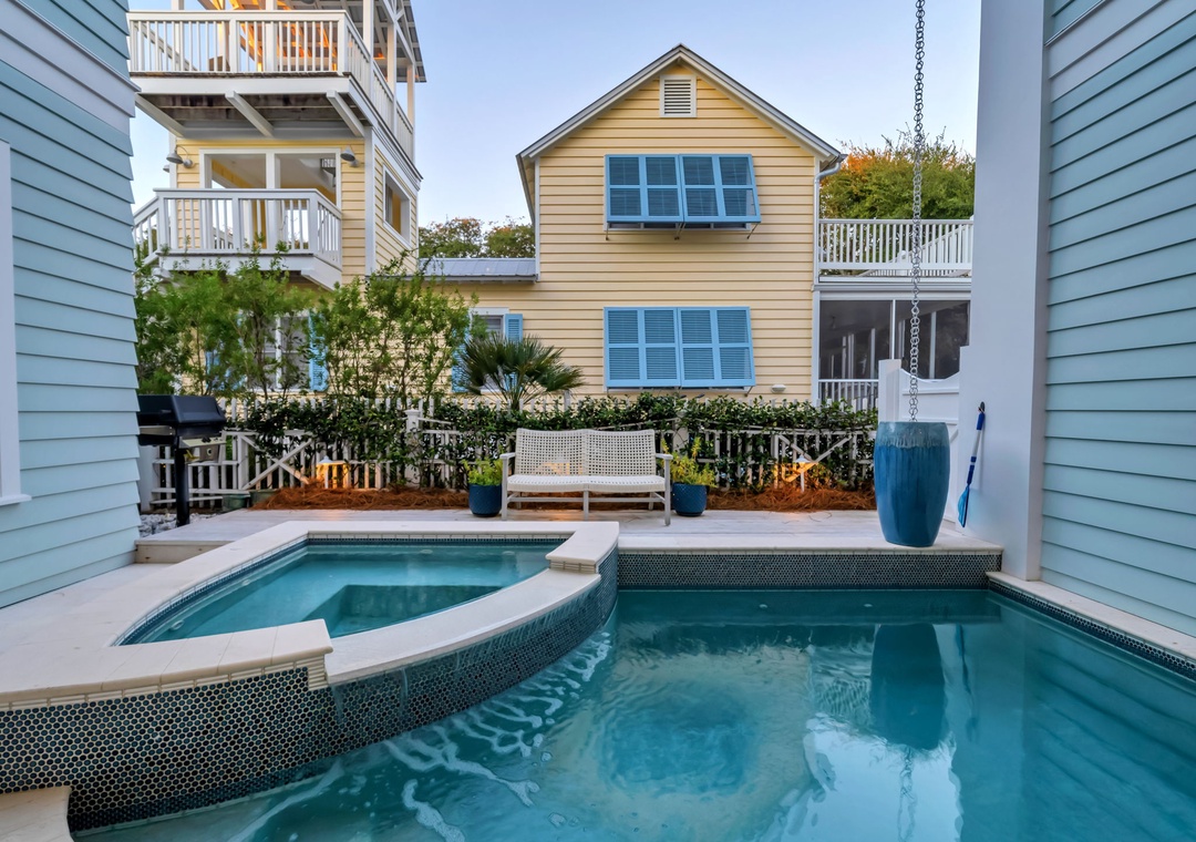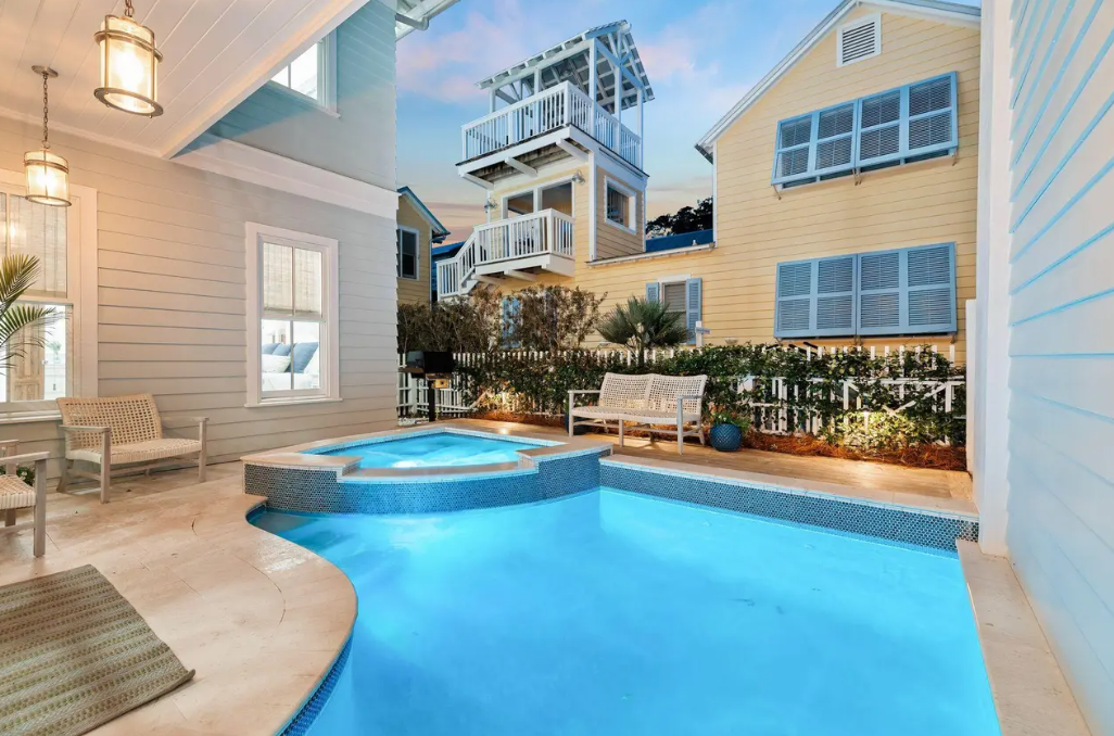 • Private pool + spa — rare in Seaside Proper