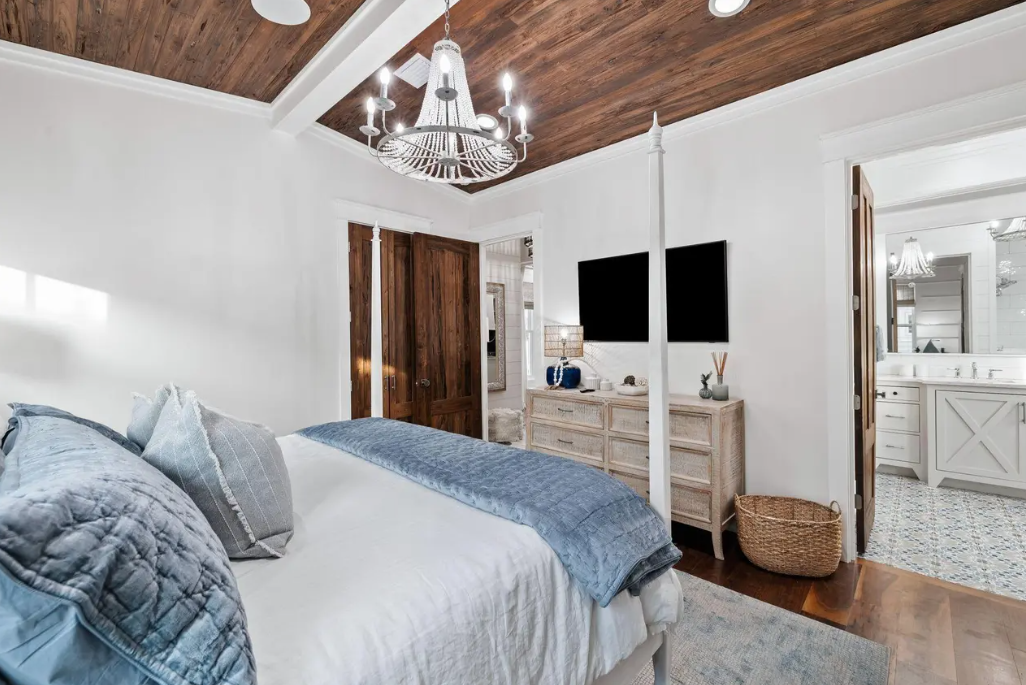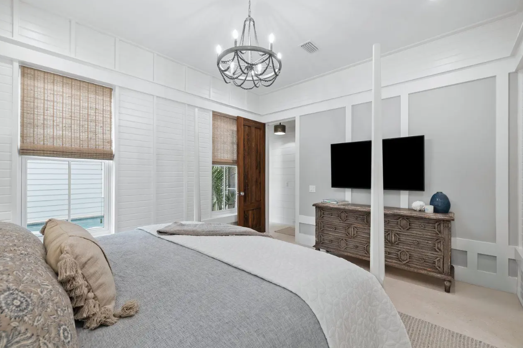 Enjoy a private pool with attached spa, multiple indoor and outdoor living spaces, a chef’s kitchen, and a rooftop deck perfect for sunset lounging. Designer décor, curated furnishings, and thoughtful touches throughout make this home ideal for families and groups seeking an elevated beach getaway.