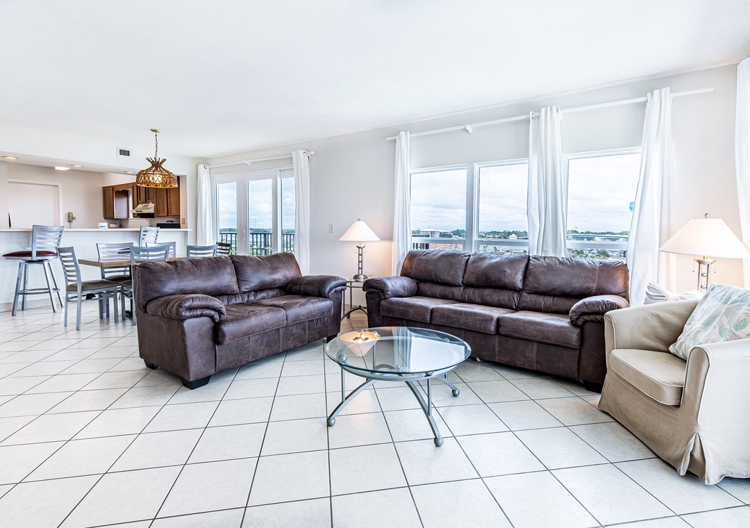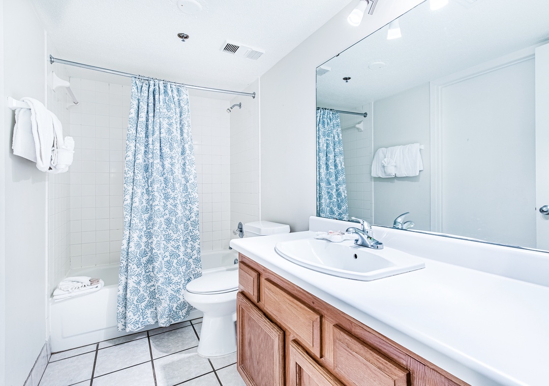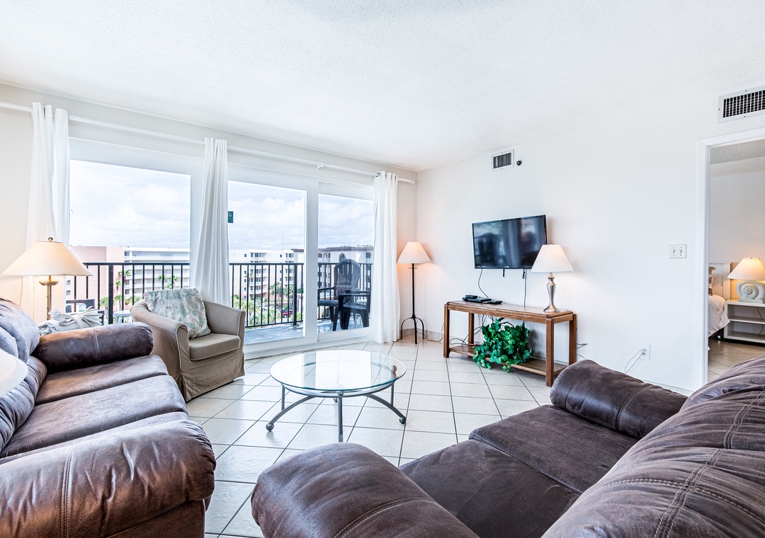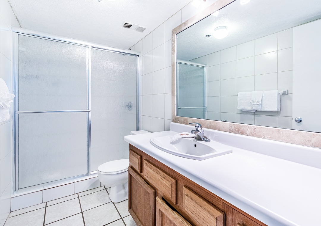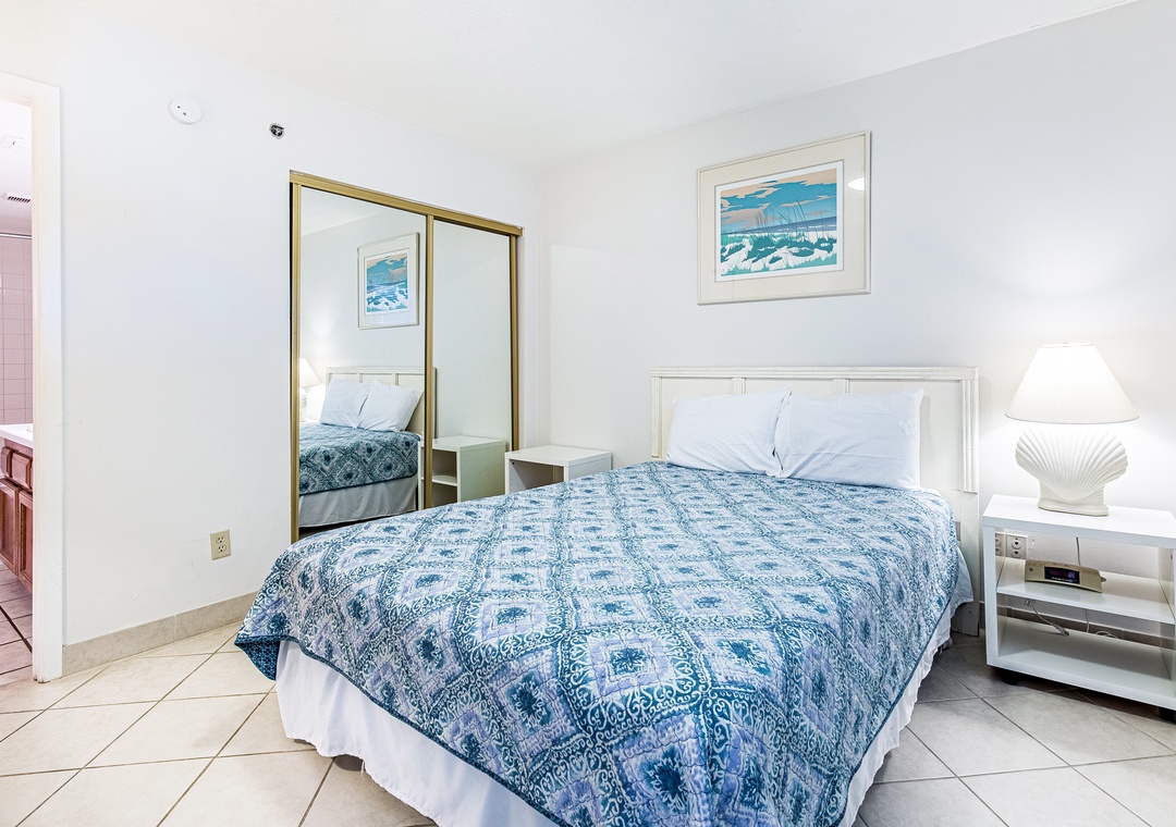 The master bedroom features a king size bed and private bath. There is a queen bed in the first guest bedroom and two twins in the 2nd guest room. With a sleeper sofa in the living room, this unit sleeps 8.