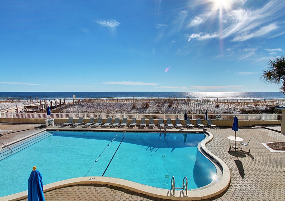 * Beachfront pool, hot tub, spacious poolside deck and lounge area