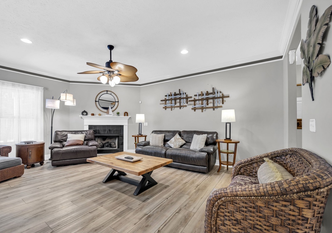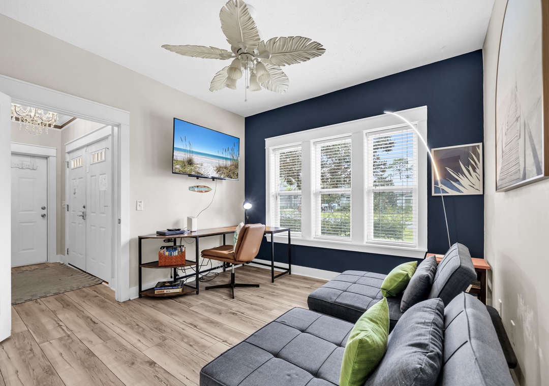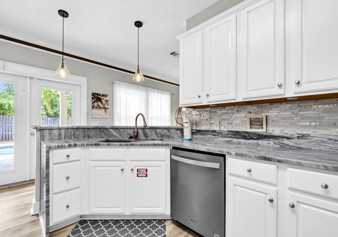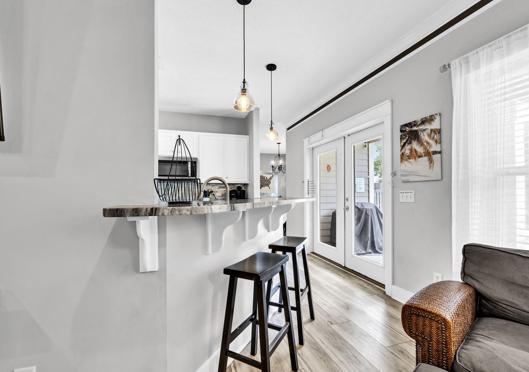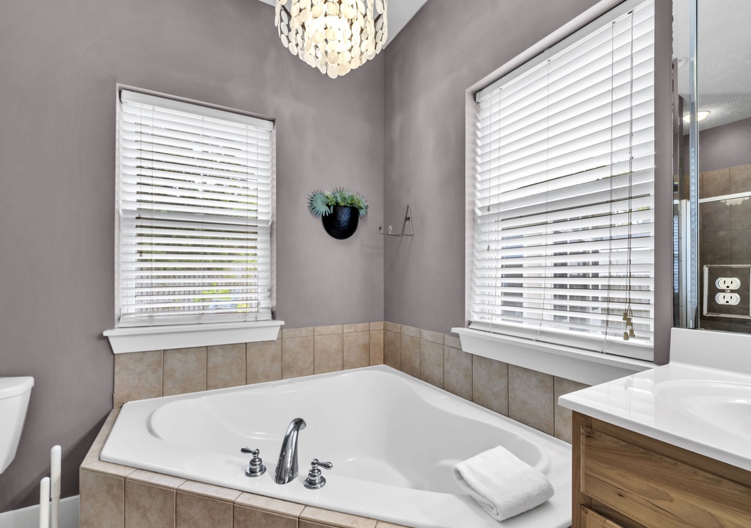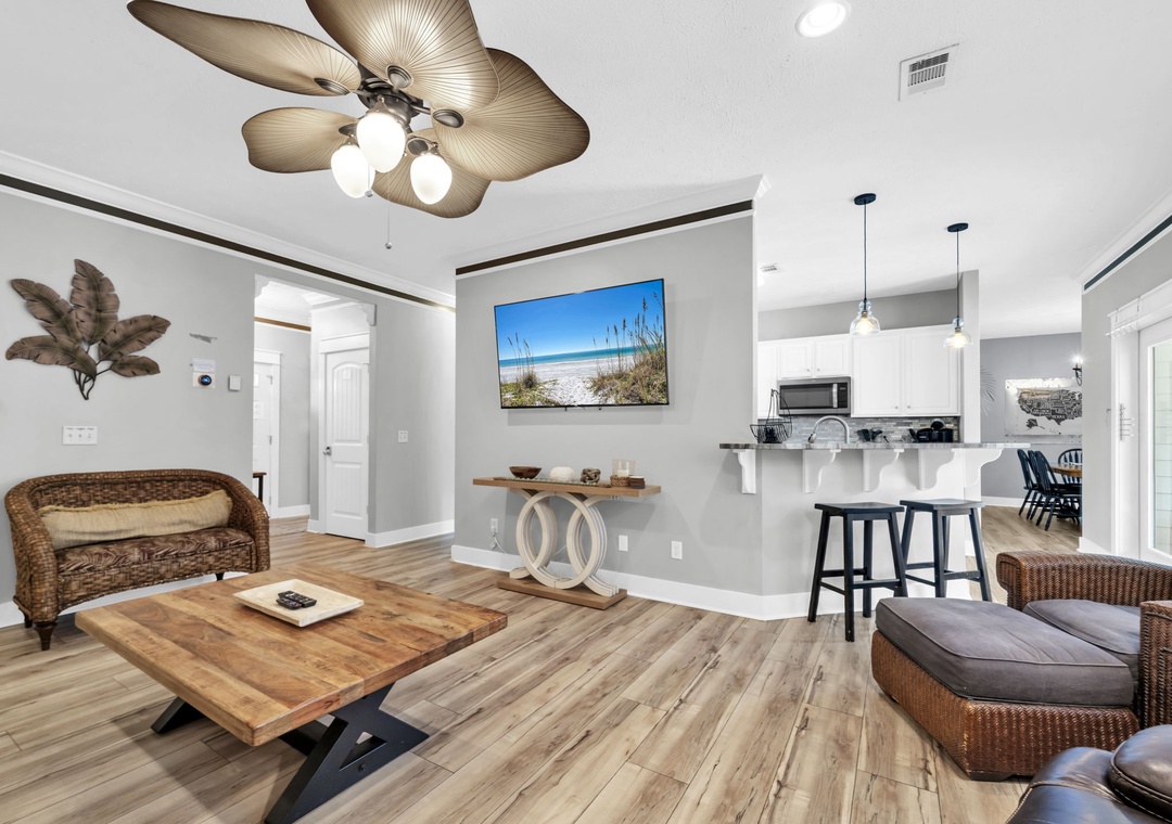 Inside, you’ll find a spacious and thoughtfully designed layout, ideal for families, kids, and even pets. The home combines comfort and style, giving every guest room to unwind. Prepare a delicious meal in the fully equipped kitchen, stocked with everything you need for cooking and dining with ease. The home comfortably sleeps up to 10 guests with well-appointed sleeping arrangements throughout. The master suite features a king bed and a luxurious ensuite bathroom with a soaking tub and walk-in shower. Guest Room 1 also includes a king bed, while Guest Room 2 offers a twin-over-twin-double bunk bed, perfect for the kids. Office space is equipped with two twin sleeper chairs, providing flexible and cozy accommodations for additional guests. Sea the Blessings is your perfect home-away-from-home for a beachside getaway.