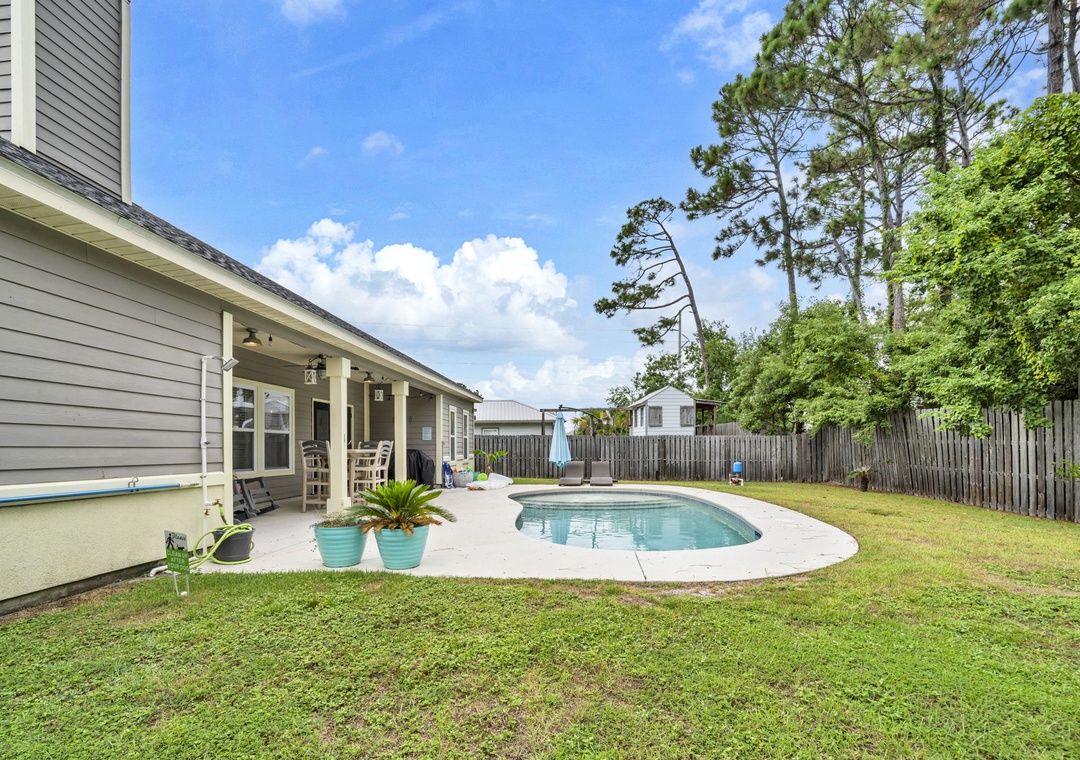 Welcome to Sea the Blessings, a beautiful 3-bedroom, 2-bathroom retreat designed for relaxation and fun. Step into your own private backyard oasis, complete with a sparkling in-ground pool, a grill, and an outdoor smart TV perfect for all-day lounging, entertaining, and making unforgettable memories.