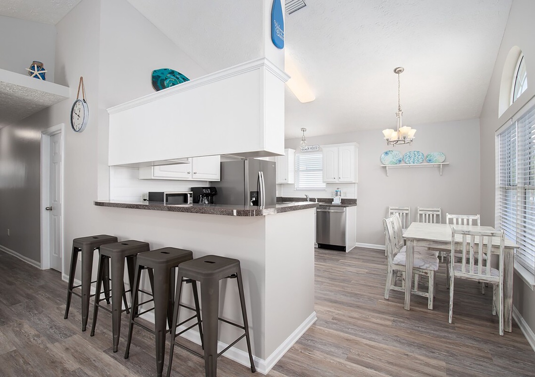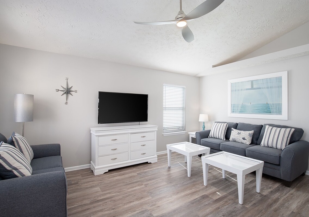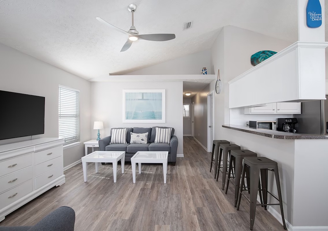 Welcome to Seagrass Way, your home away from home, perfectly situated in the quiet, gated community of Palm Cove. This charming 3-bedroom, 2-bathroom coastal retreat is located less than a mile from the sugar-white sands of the Gulf of Mexico and within walking distance to local restaurants, Starbucks, and Publix. Step inside to a soothing, coastal-inspired living space designed for ultimate relaxation. The fully equipped kitchen makes it easy to prepare delicious meals during your stay. Seagrass Way comfortably sleeps up to 7 guests, offering a King primary bedroom with En Suite, a queen guest bedroom with a door that accesses the back patio, and a third bedroom with a twin-over-full bunk bed—perfect for families or groups. Outside, unwind on the spacious back patio. It’s the ideal spot for morning coffee or relaxing after a fun day at the beach. 2 Off Street Parking spaces available. Come relax, recharge, and start making lasting memories at Seagrass Way.