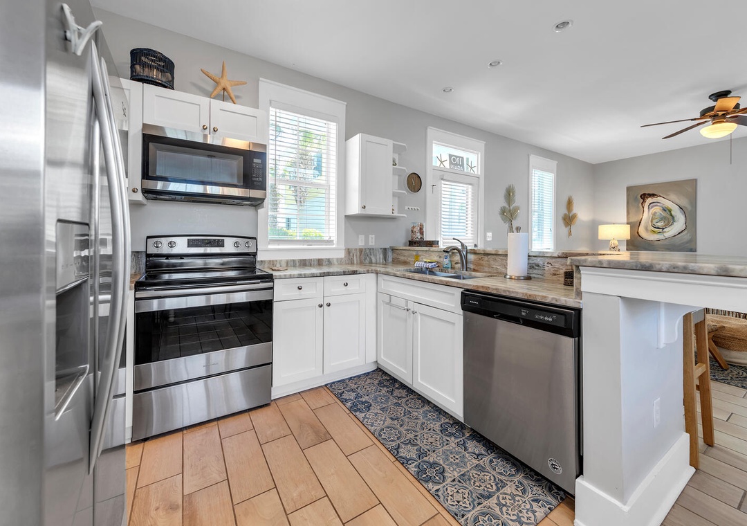 One Ten Again is centrally located on 30A with only a short bike ride to the excellent shopping and dining options of Seaside! If you prefer a stroll, then Café 30A is only minutes away and constantly ranked as one of the best restaurants on 30A. Angelina's is also within walking distance for pasta or pizza. Walk to The Donut Hut for morning donuts or breakfast sandwiches. The Big Chill at Prominence, around 3 miles east, is a great place to take kids, watch an outdoor movie, listen to music, or eat at one of the half-a-dozen small places.