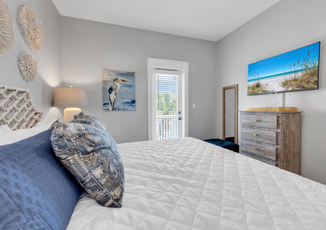 Welcome to One Ten Again, a 2-bedroom 2.5-bathroom. It is just a short 350 yards from the beautiful white sand beaches. With a king in the master and twin bunks and a queen bed in the guest room on the second floor, this home sleeps 6 comfortably! Prepare anything from your morning coffee to a full-course dinner in the well-equipped kitchen and lots of seats for your guests around the table or bar. If you need to wash a load or two of clothes, there is a stacked washer and dryer. Enjoy sitting on your private balcony or your porch watching the sunsets. Come escape to the adorable One Ten Again!