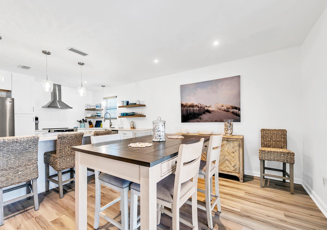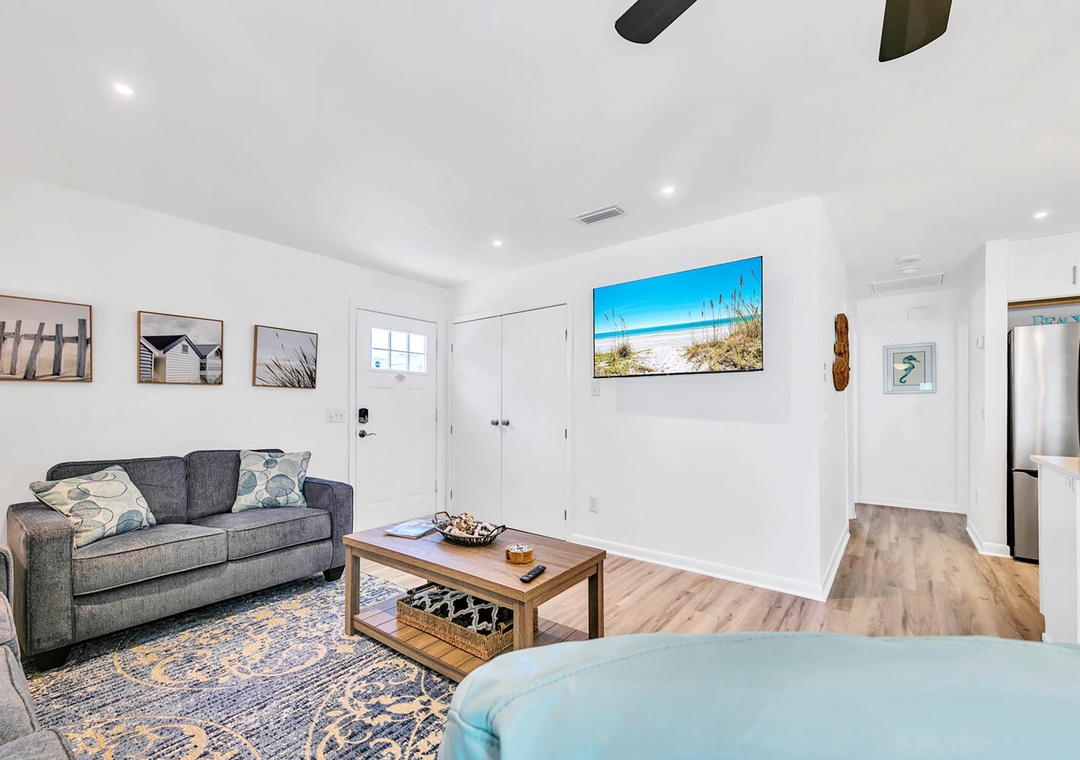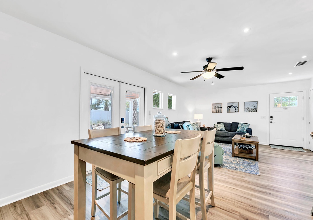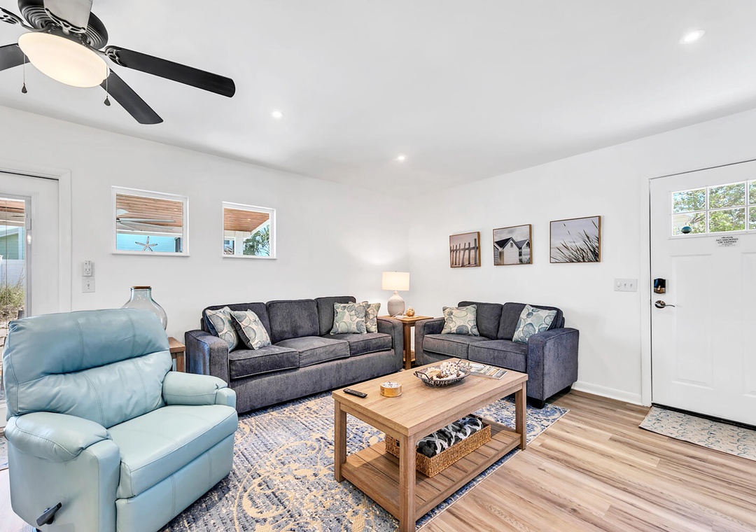 Looking for the perfect family-friendly getaway? Welcome to Seahorse Sanctuary, your cozy home away from home! This charming 2-bedroom, 2-bath retreat offers a fully renovated beach house to relax and entertain. You'll find a king master suite, a guest bedroom with two full beds, and a queen sleeper sofa in the living room, comfortably accommodating up to seven guests. Got a boat or bike trailer? No problem—there’s space to park right in front of the house! After a sun-soaked day at the beach, rinse off at the outdoor shower, unwind in the backyard oasis, sharing laughter and make unforgettable memories with loved ones. Seahorse Sanctuary is more than just a vacation home—it’s where lifelong memories begin.