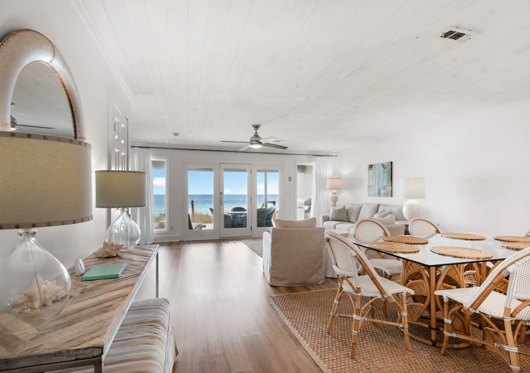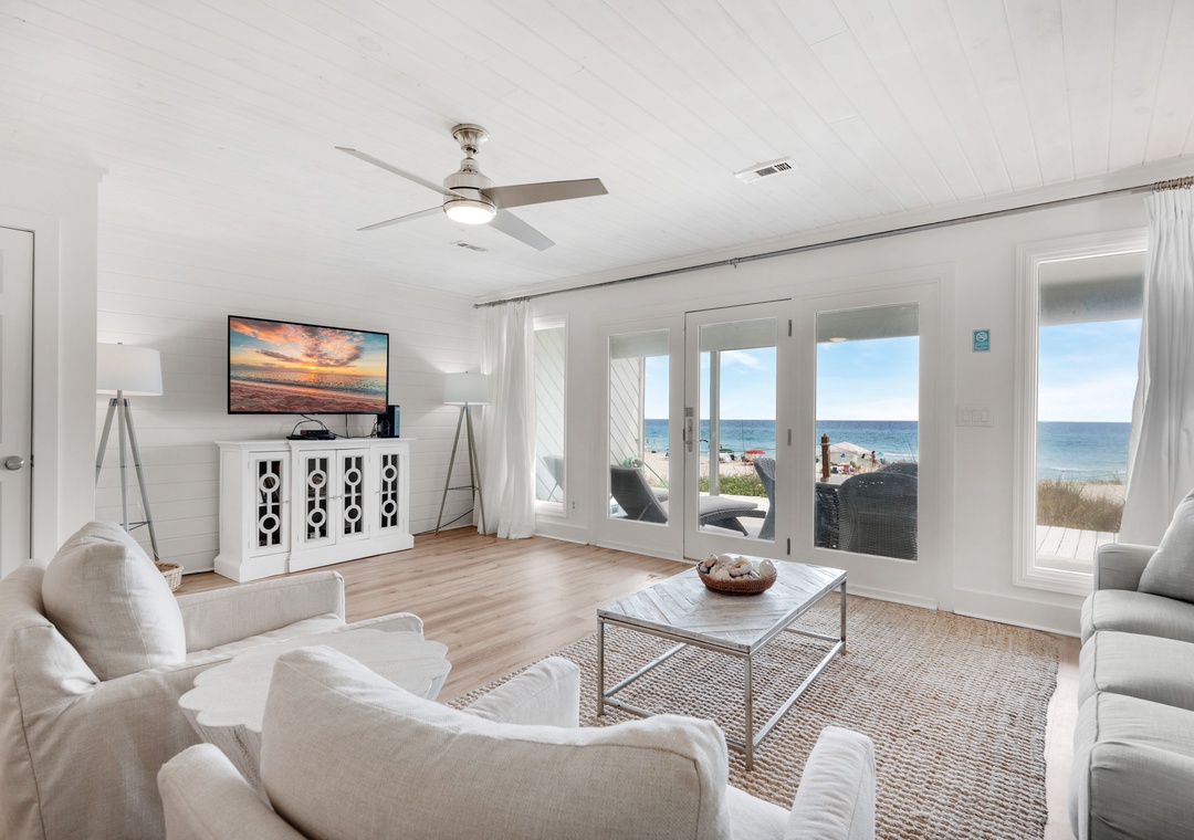 You can’t beat being steps away from the beach when you choose SeaRenity at Inlet! This lovely Beachfront 2BR/2.5BA townhome is in Inlet Beach, located just off Hwy 98. The Master bedroom has a King bed and additional seating, while the guest bedroom has two Queen beds including a sleeper sofa in the living room, sleeping 8 guests comfortably. The amazing beach front balcony offers a beautiful view of the gulf waters and sandy white beach. Enjoy lasting memories by making SeaRenity at Inlet your repeat vacation choice!
