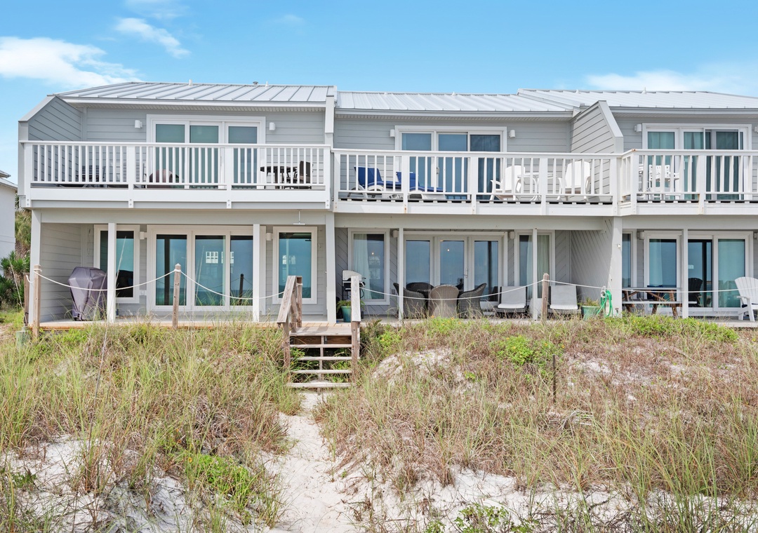 In a complex of 6 well maintained, beachfront townhouses. Very clean with thoughtful updates and tasteful decor. Good communication from property management. On the beac, at the quieter end, so lots of space on the beach. There are more expensive houses located a lot further from the beach. This is the best location. Short bike ride to Rosemary. We would rent here again.- Reviewed On: 3/19/2021