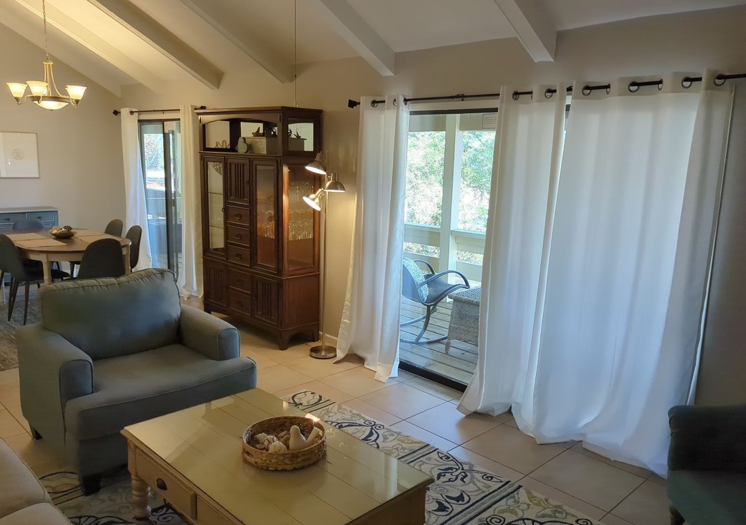 Welcome to your peaceful getaway in the heart of Seascape Resort, where this upper-level condo offers a perfect blend of comfort, relaxation, and resort-style living. Inside, you’ll find a cozy kitchen and dining area that flows into a bright, open living space with high ceilings and plenty of natural light, leading out to a lovely balcony overlooking the golf course—an ideal spot for morning coffee or afternoon conversations while watching golfers at play. The unit is conveniently located directly across from the pickleball courts and pool and comfortably sleeps guests with a king bed in the master bedroom, a queen bed in the guest bedroom, and a sleeper sofa in the living room. Come start making lasting memories at 86 Breakwater Bay, Unit 10G.