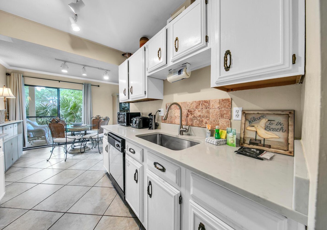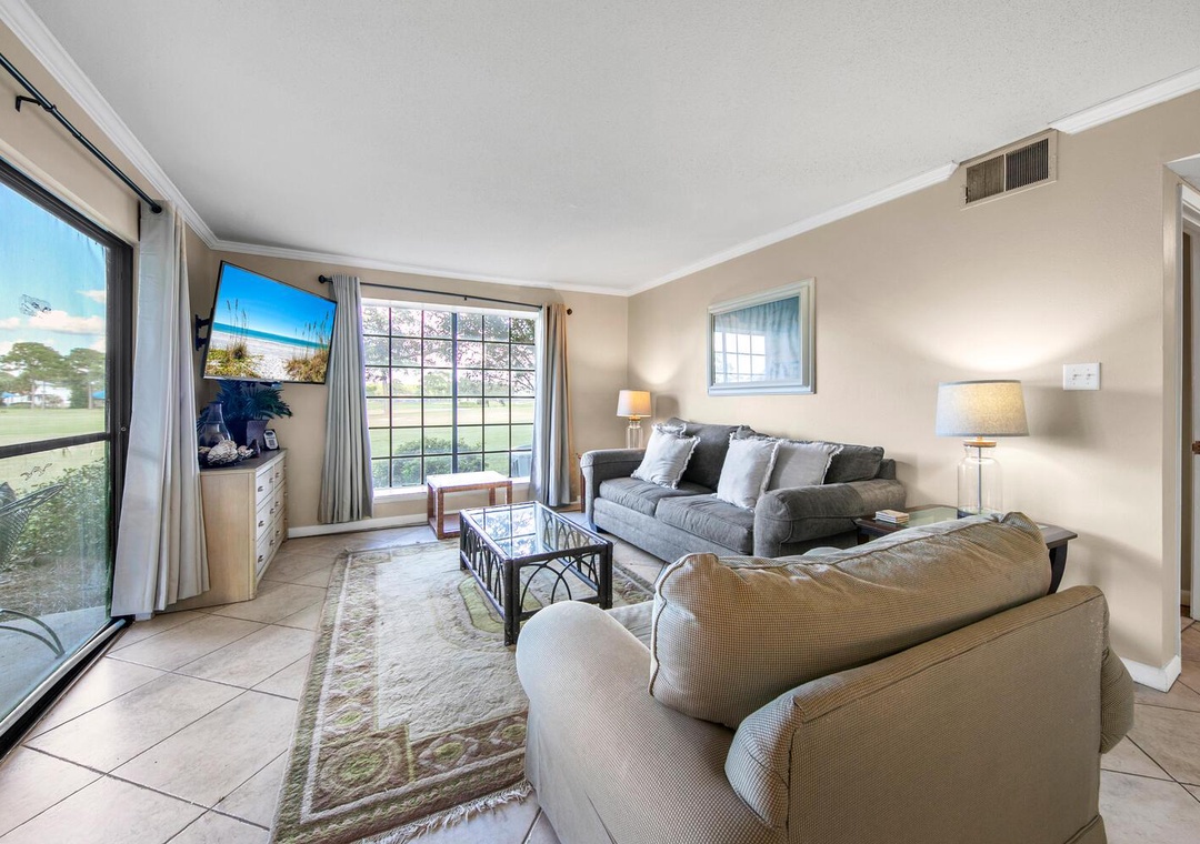 Escape to paradise at Seascape Golf Villa 4A, an elegant ground-floor, 2-bedroom condo nestled within Seascape Resort and overlooking the pristine golf course. This cozy and inviting retreat offers all the comforts of home, surrounded by beautiful natural scenery. Prepare delicious meals in the fully equipped kitchen, then relax in the spacious living area featuring vaulted ceilings and plenty of natural light. When it’s time to unwind, the primary bedroom offers a comfortable queen bed, while the guest bedroom features a twin-over-full bunk bed—perfect for families. With two full bathrooms, everyone has space to spread out and relax. Step outside to enjoy stunning golf course views or take a stroll across the course to the Seascape Towne Center for dining, shopping, and entertainment. With its ideal location, spacious layout, and family-friendly amenities, it’s easy to see why Seascape Golf Villa 4A is a guest favorite.