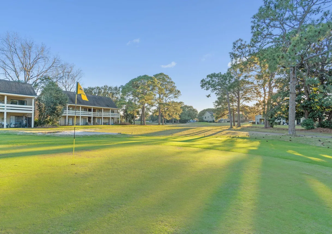 Inside, this two-bedroom, two-bath condo comfortably accommodates up to six guests and is designed with convenience in mind. The ground-floor location allows for easy access, while the in-unit washer and dryer make your stay even more comfortable. The cozy living area is the perfect place to unwind after a day in the sun, and the private patio with porch swing offers a serene space to relax and take in the peaceful golf course views.