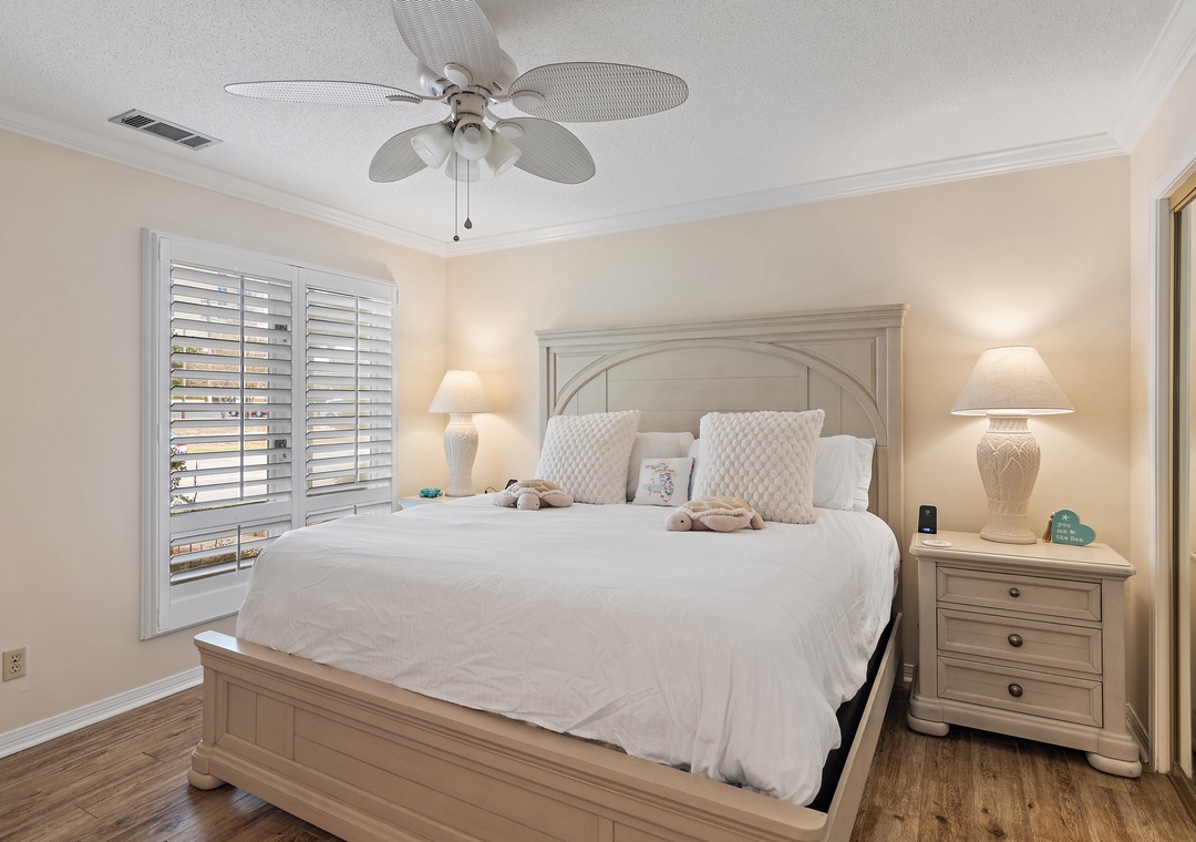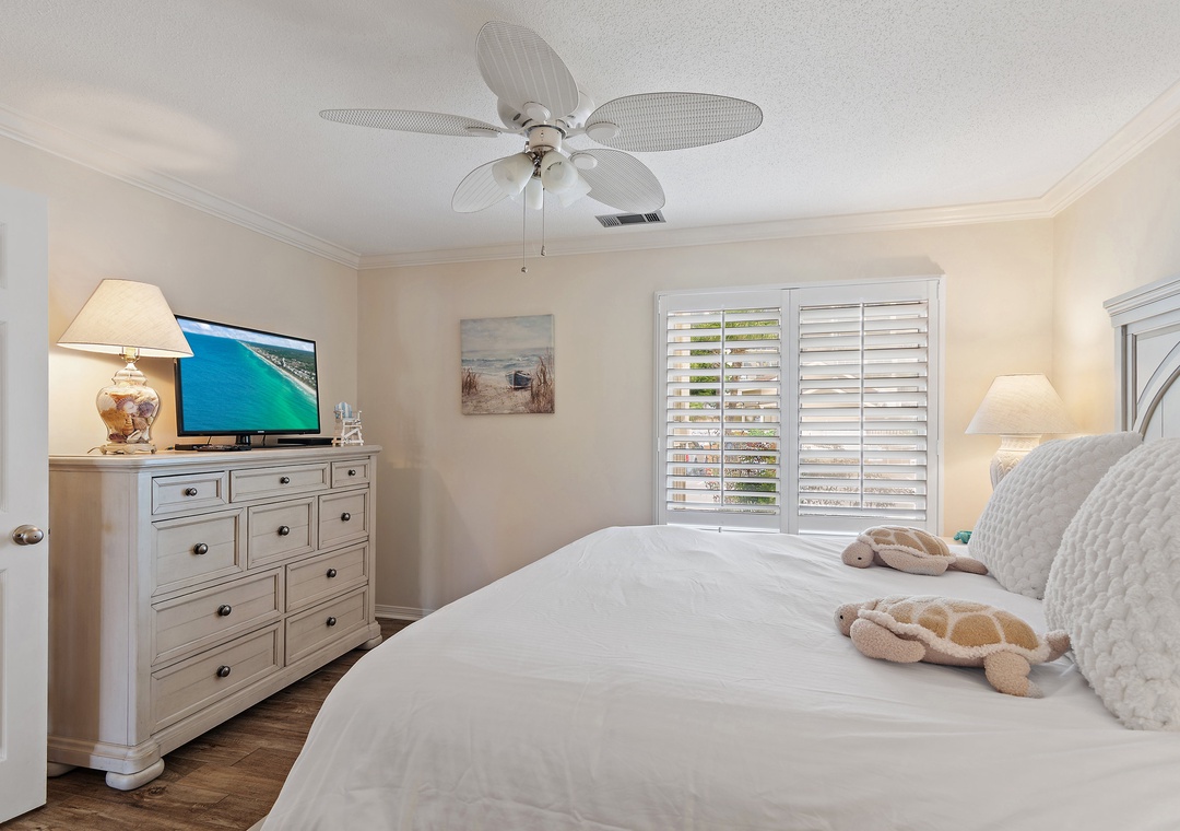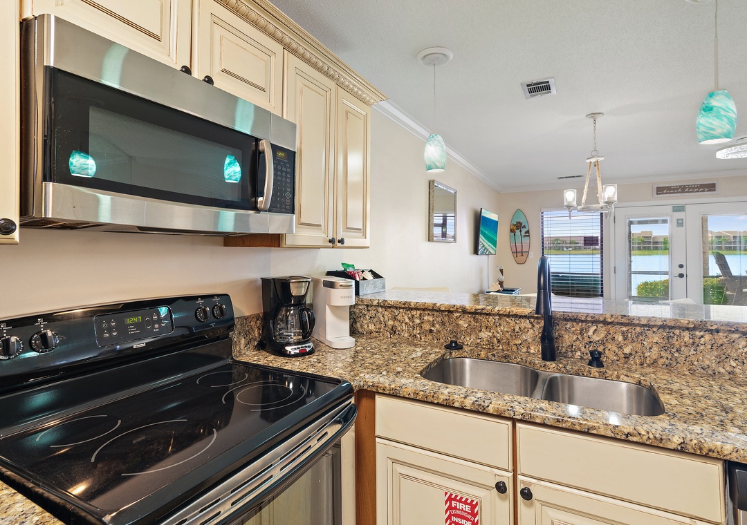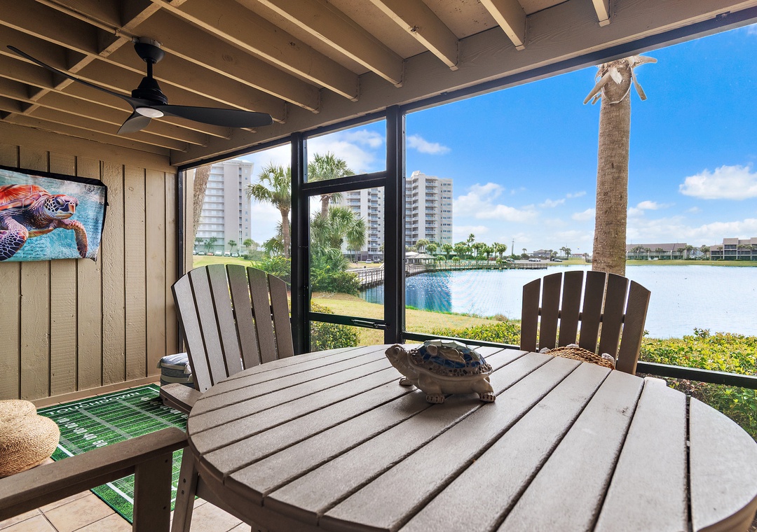 Welcome to "Don't Worry, Beach Happy" – Your Cozy Coastal Escape at Seascape Lakefront Villas. Tucked away in the picturesque Seascape Lakefront Villas, "Don't Worry, Beach Happy" is a charming 1BR/1BA ground-floor unit that combines coastal vibes with modern comfort. This cozy retreat is the perfect place to unwind and recharge. Inside, you’ll find a stylish space that feels just like home, featuring a master bedroom with a comfortable King-sized bed for a restful night’s sleep. The full kitchen, with granite counters and stainless-steel appliances, is perfect for whipping up meals after a day of fun by the sea. The living room is your spot to relax, with a sleeper sofa that boasts a brand-new gel mattress, offering additional sleeping space and accommodating up to 5 guests. As the sun rises over Stuart Lake, enjoy your morning coffee on the screened-in porch, where the panoramic views will instantly put you at ease. Plus, there's a smart TV out here, perfect for catching the game while lounging and taking in the view. When you’re ready to explore, take a stroll along the boardwalk for direct beach access or enjoy delicious seafood at the famous Whale’s Tail restaurant. Seascape Lakefront Villas offers everything you need for a fun and relaxing stay, with multiple pools, 2,000 feet of pristine beach, and a 9-hole golf course. There’s always something to do or somewhere to relax.
