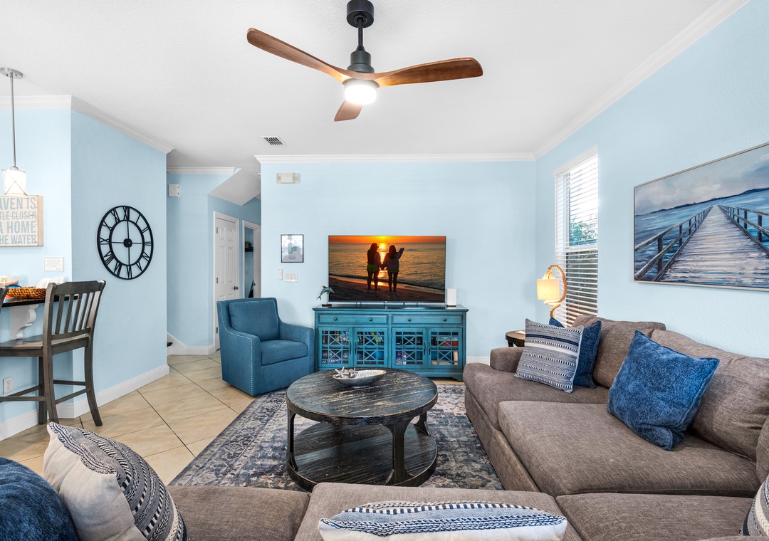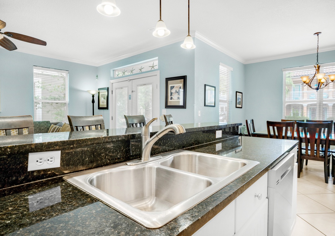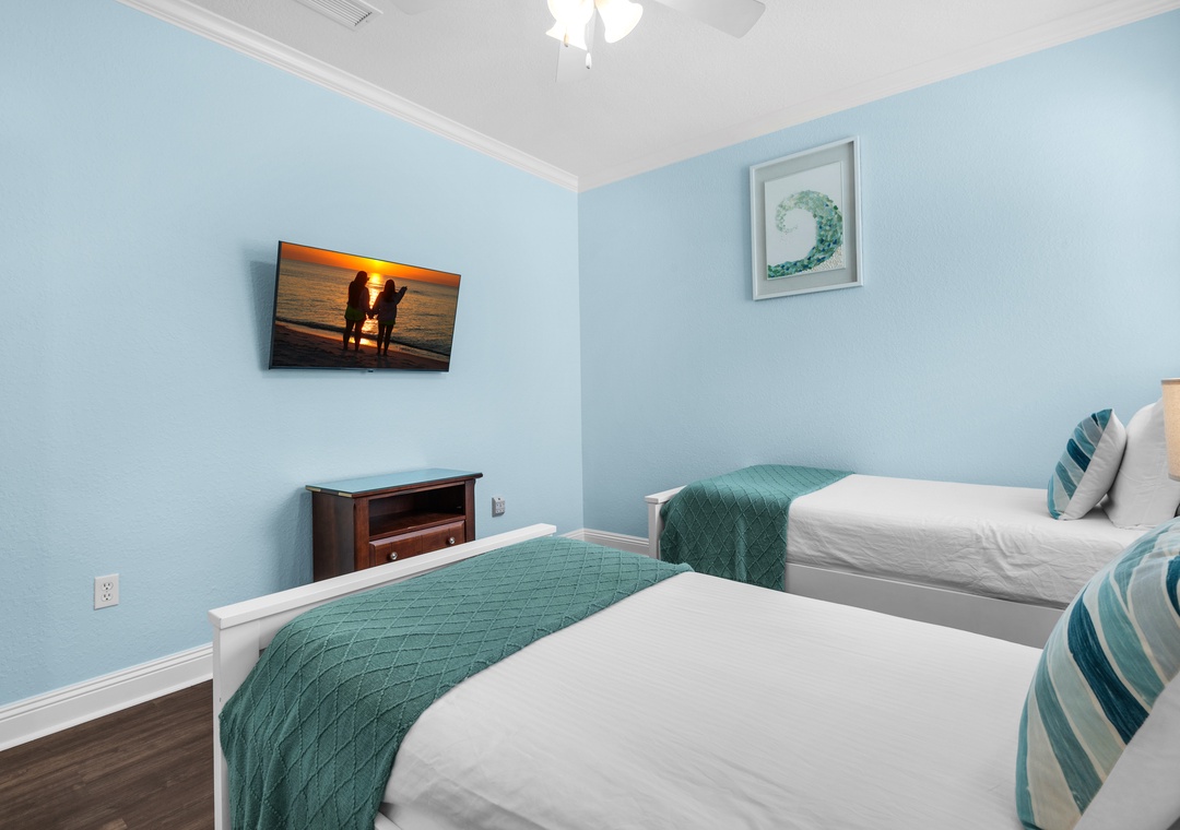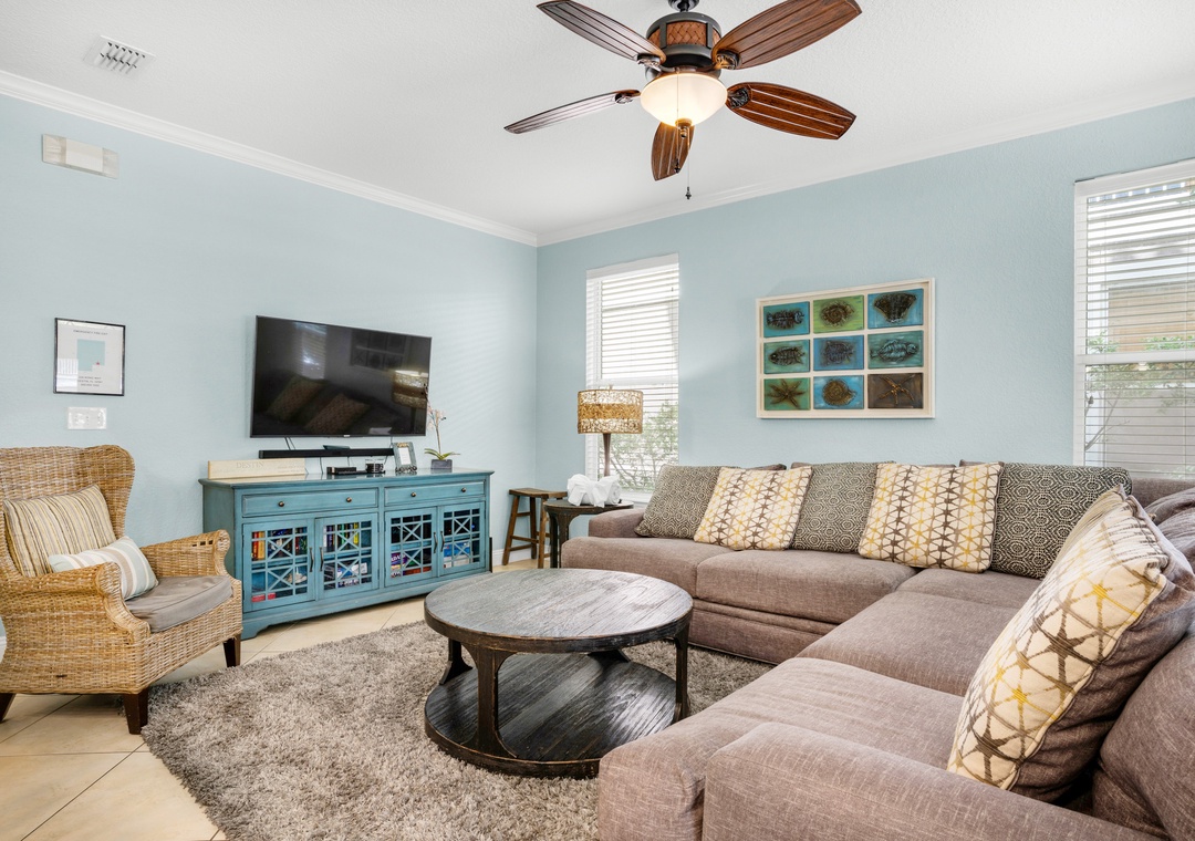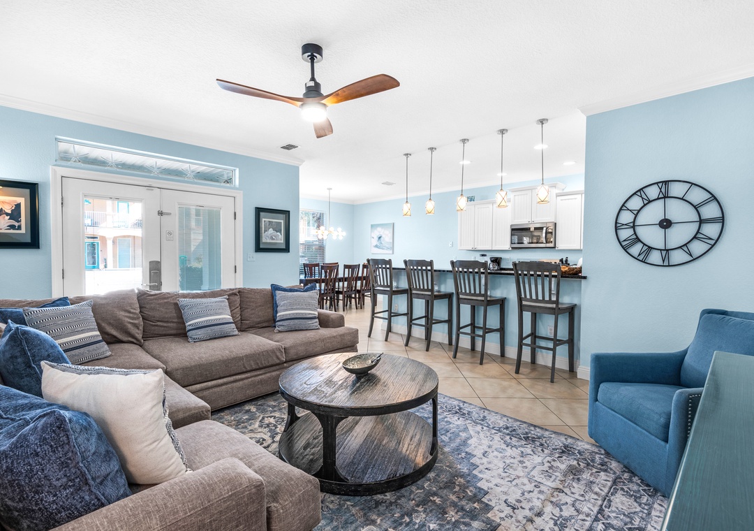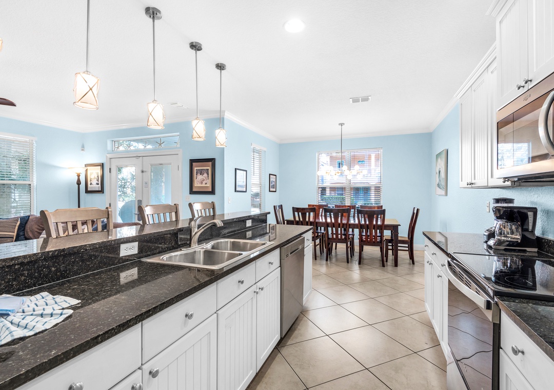 Villages of Crystal Beach is an exclusive, gated community only a few blocks from the beautiful blue waters and white sandy beaches of Destin. You can make the walk on foot or hop on the free seasonal trolley service (Memorial Day through Labor Day): they will even pick you up at the house and drop you off right at the beach! The pool area at Villages of Crystal Beach is a vacation must! The lagoon style zero entry pool is 30,000 square feet of gorgeous, sparkling clear water. There is a spa, tropical landscaping, and plenty of seating areas. It also has surround sound, a flat screen TV, and a grilling area to help you relax and unwind.