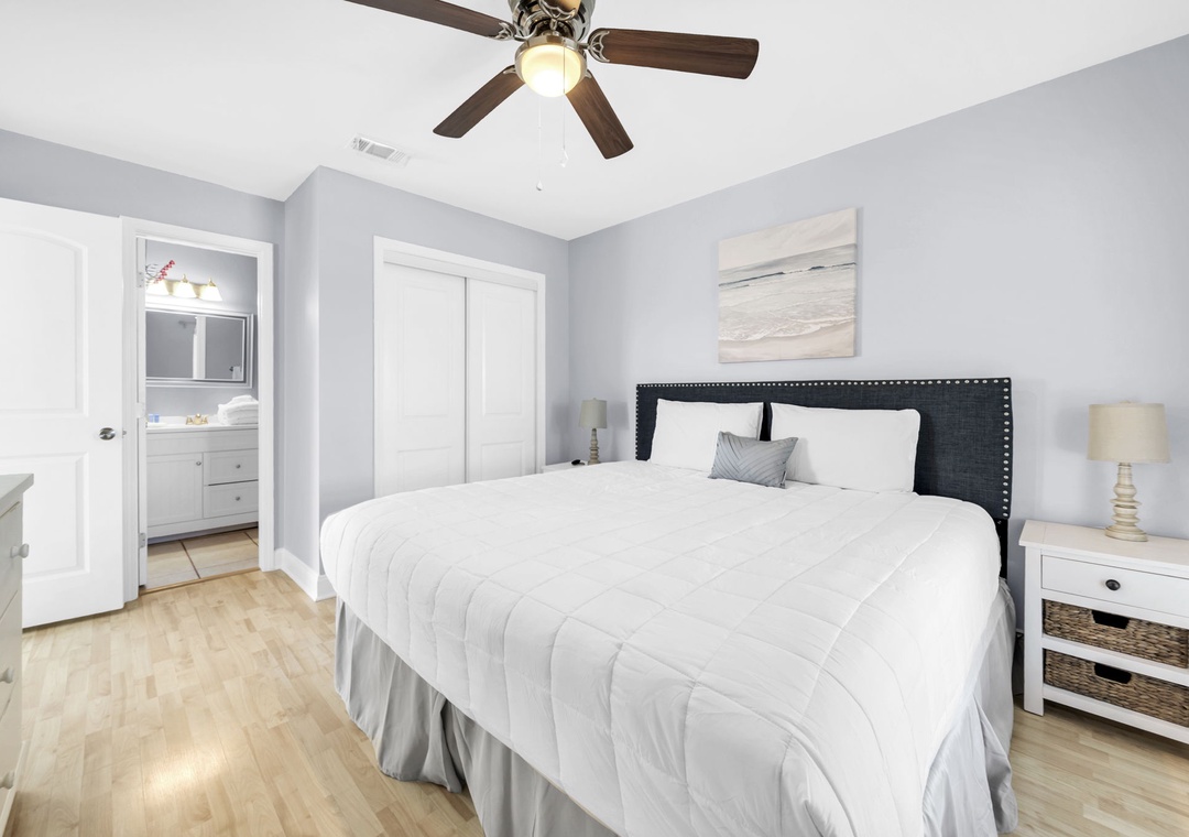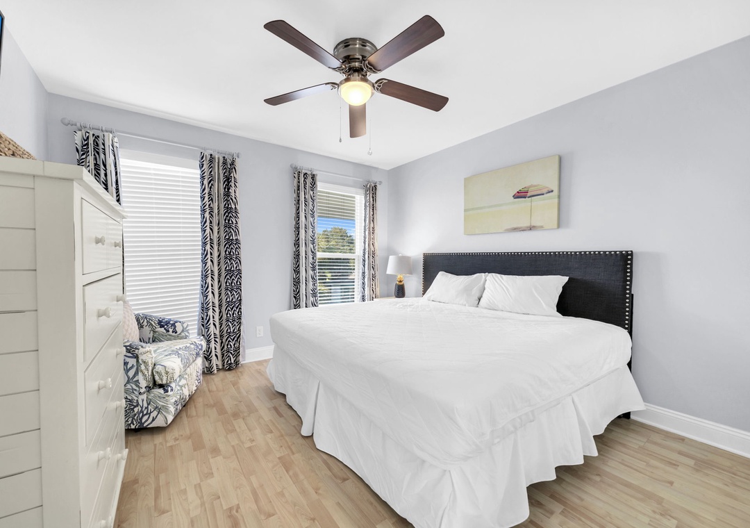 Welcome to Serenity at Sunnyside, your perfect Panama City Beach retreat. Whether you’re here to explore everything the area has to offer or unwind and soak up the coastal vibes, this condo is an ideal choice. This beautifully appointed 2-bedroom, 2-bath condo comfortably accommodates up to six guests. The primary bedroom features a king-size bed and a private en-suite bath, while the guest bedroom also offers a king-size bed. Additional sleeping space is available with a sleeper sofa in the living room. After a fun-filled day at the beach, relax in the living area and enjoy your favorite shows or movies on the flat-screen TV. Step outside onto the balcony to sip your morning coffee or wind down in the evening with a refreshing drink. The fully equipped kitchen provides everything you need to prepare home-cooked meals and enjoy dining in. Make unforgettable vacation memories and experience coastal comfort at Serenity at Sunnyside.